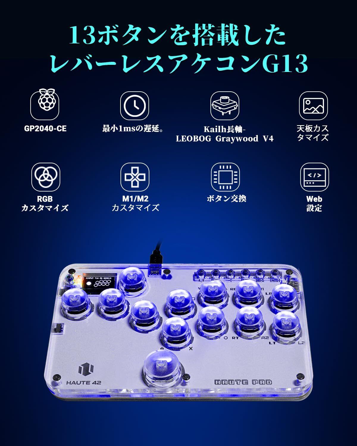 Haute42 レバーレスアケコン 超薄型オールボタンアケコン レバーレスコントローラー for PC/Switch/PS4 PS3 RGBライト DIY ホットスワップ 連射機能 格闘ゲームコントローラー 日本語説明書付き (G13)
