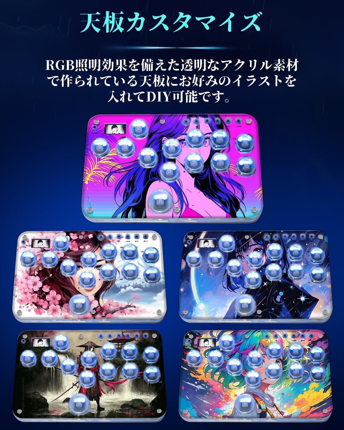 【カスタマイズRGBデザイン&DIYサポート】:RGB照明効果を備えた透明なアクリル素材で、13個のボタンを備えたレバーレスアーケードコントローラーは格闘ゲームを楽しむための心地よいタッチを提供します。自分のスキンを作ることで、アーケートコントローラーをよりクールで、個性的にすることが出来ます。