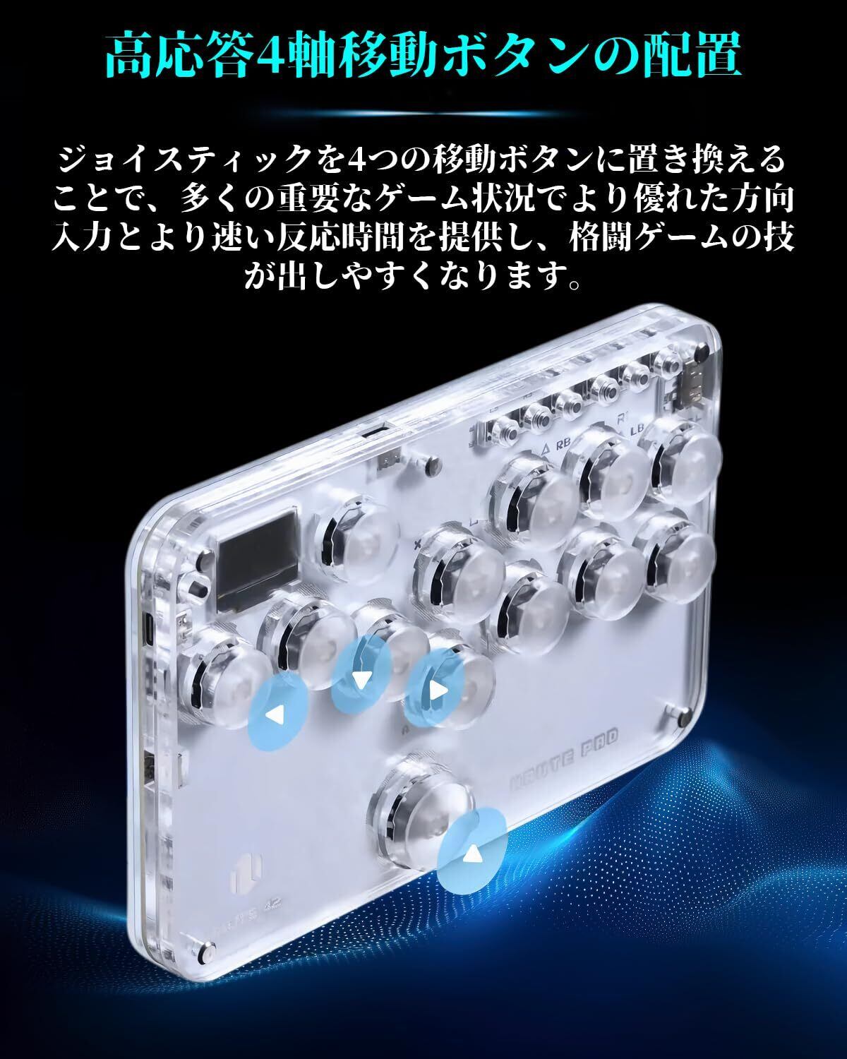 【製品の特徴】:5つのコントローラーモード 「 X入力モード/スイッチモード/PS3 /D入力モード/PS4モード/キーボードモード」。複数のSOCDクリーニングモード、ターボ機能、埋め込み型 Web 構成、ボタンレイアウトの交換、EXT ポートとM1/M2 カスタムボタンを備えています。