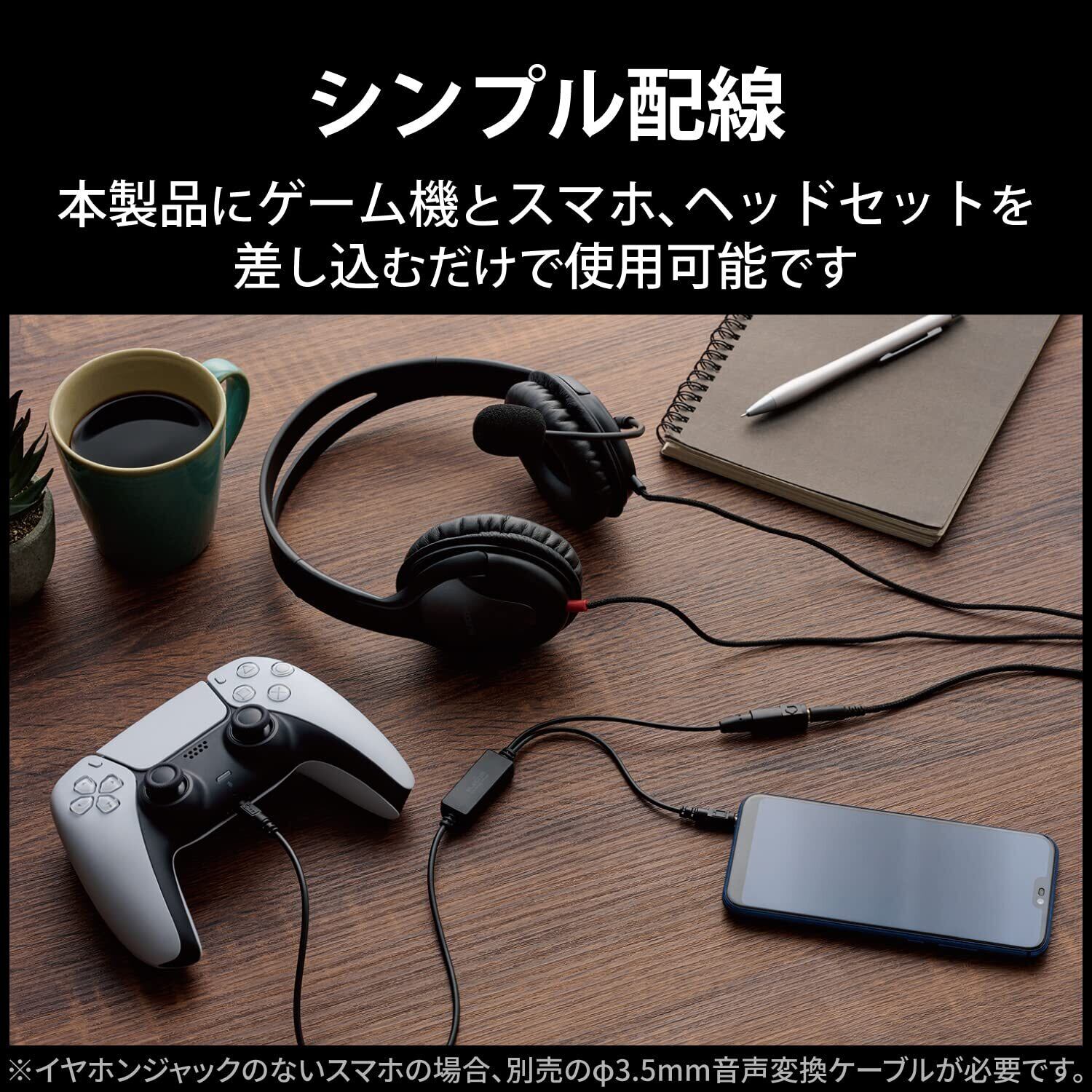 本製品にゲーム機とスマートフォン、マイク付きステレオヘッドセットを差し込むだけで使用可能です。