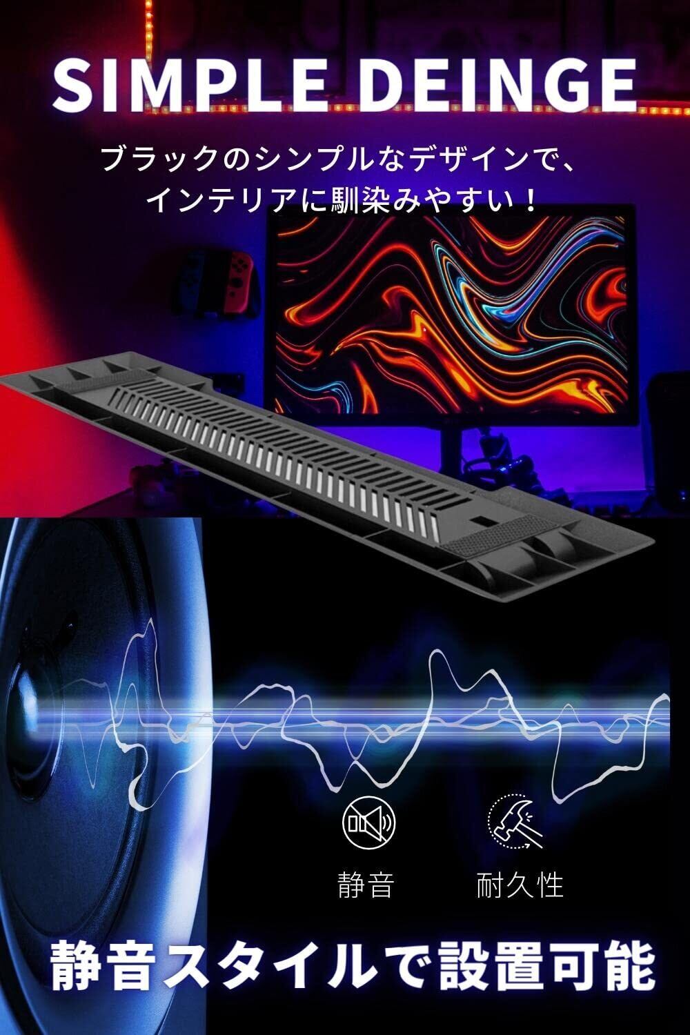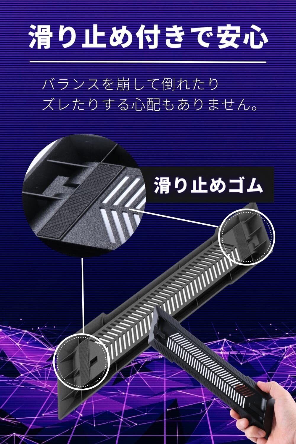 【 滑り止め付きで安心です 】 縦置きスタンドの裏側には、滑り止めゴムが付いておりバランスを崩して倒れたりズレたりする心配もありません。少しの衝撃で倒れてしまうことがありますので、縦置きスタンドをぜひ活用ください 【 商品仕様 】 ●「素材」ABS製 ●「カラー」ブラック ●「サイズ」画像にてご確認下さい。