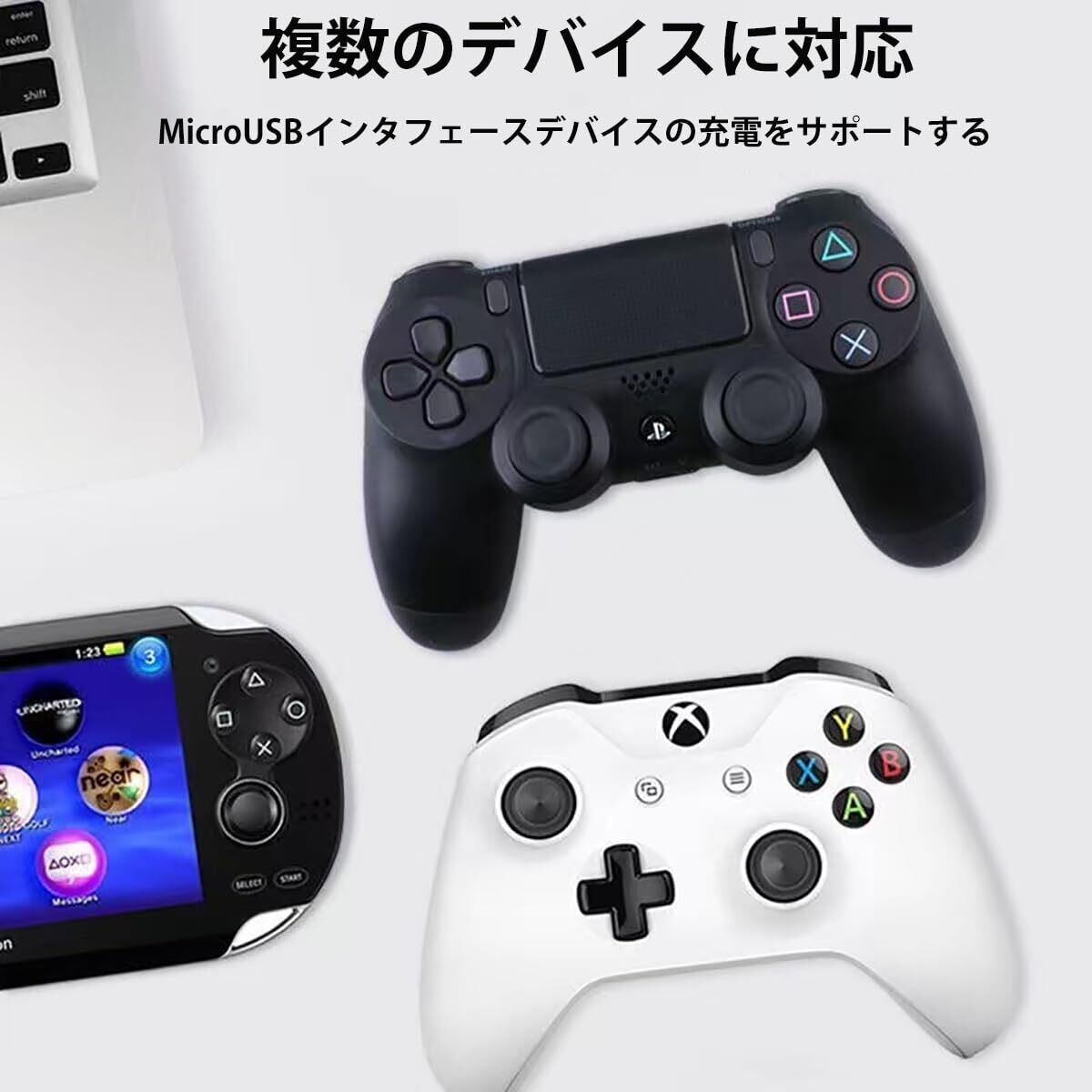 このdualshock 4 充電USB ケーブルはPS4、PS4 Slim、PS4 Pro、Xbox、携帯電話、他USBポート対応機器に対しての充電もできます。