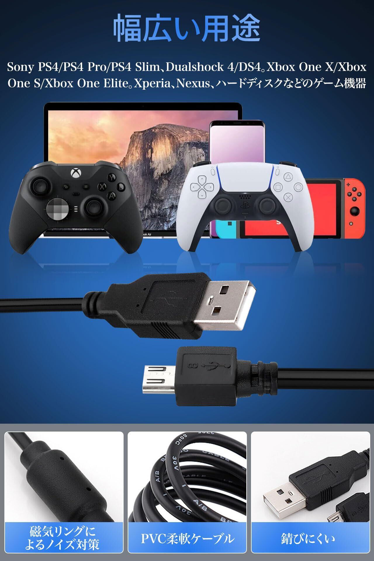 【広範な互換性】この充電ケーブルはPS4、PS4 Slim、PS4 Pro、Xboxコントローラーをはじめ、さまざまなUSB対応機器での充電に対応。micro USBポート搭載の機器で幅広くお使いいただけます。