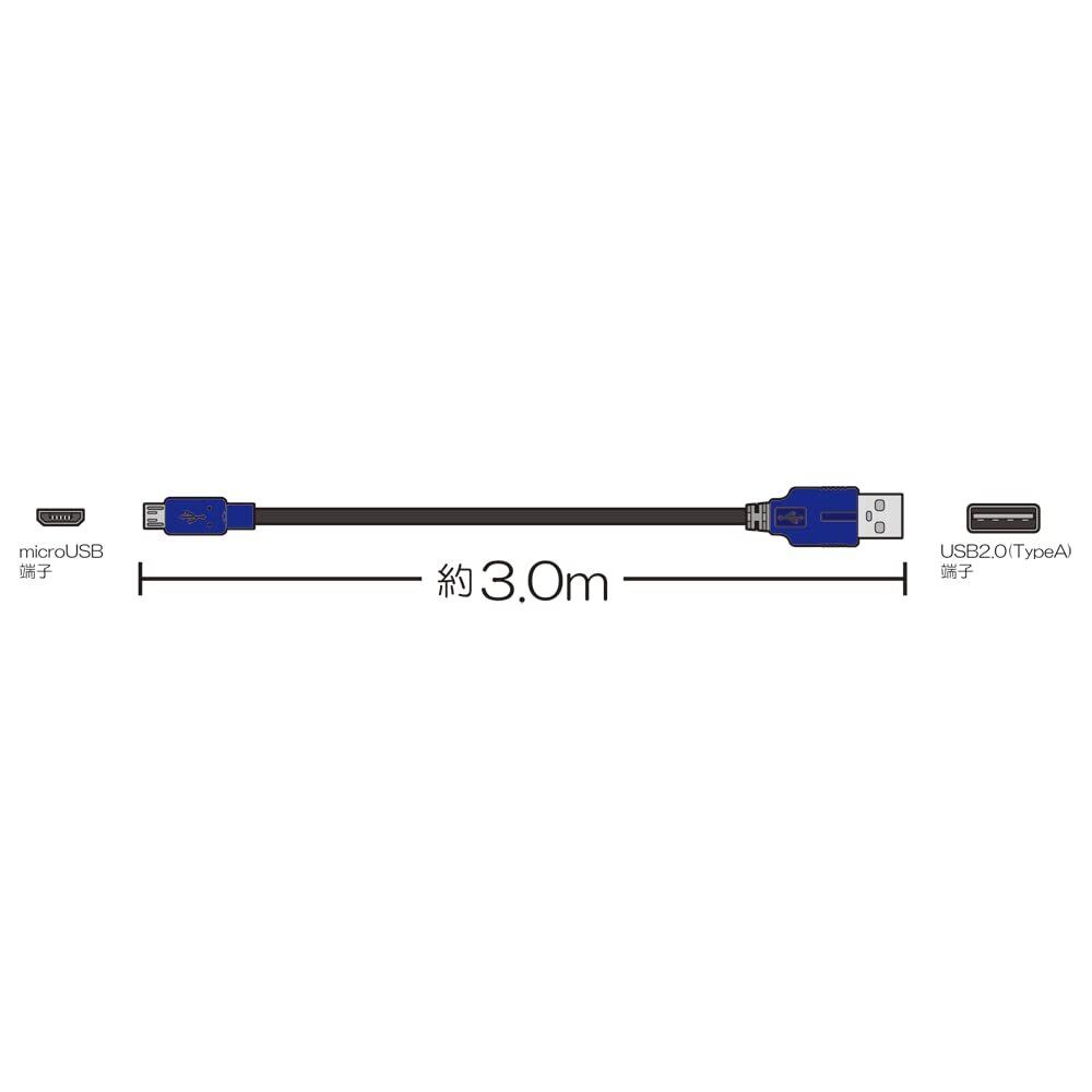 【ケーブル長】約3.0m 【USB端子】Type-A ⇔ microUSB Type-B 【USB規格】USB2.0