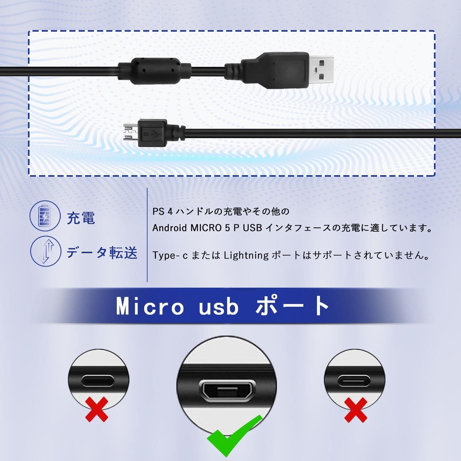 【PS4充電ケーブル】Ps4コントローラー専用の充電ケーブルで、 Android micro5p USBデバイスの充電ケーブルとも互換性があります。5V/2.4Aの急速充電、最大480Mbpsの高速データを転送できます。