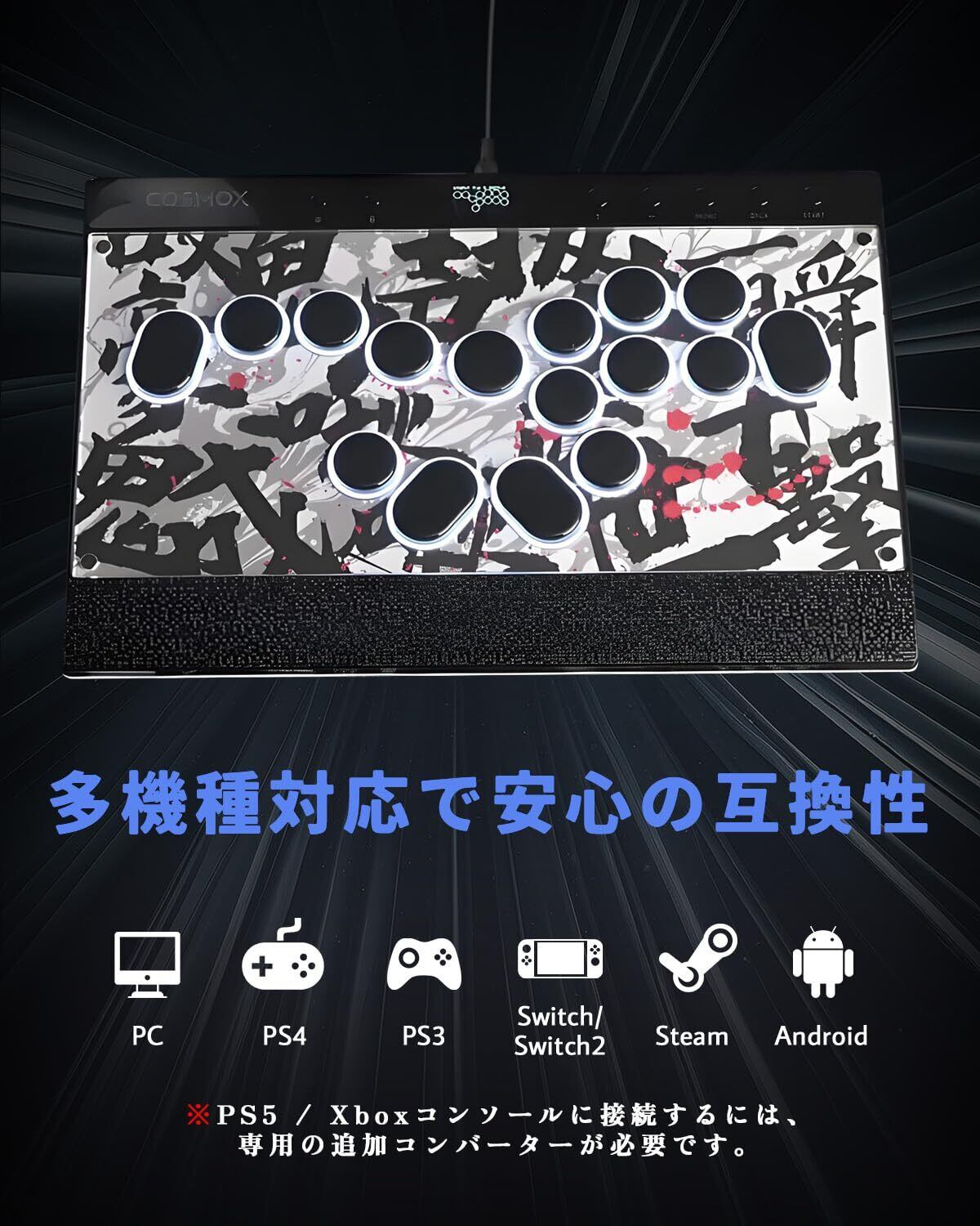 【幅広い互換性】 Windows 10以降(キーボードモード)、Steam Deck、Switch/Switch2、PS 3/4(※コンバーター必要)など、幅広い機器に対応。PS5やXboxシリーズでもコンバーターを利用すればプレイ可能です。公式サイトには接続方法や設定ガイドも用意されているので、初心者から上級者まで安心してお使いいただけます。