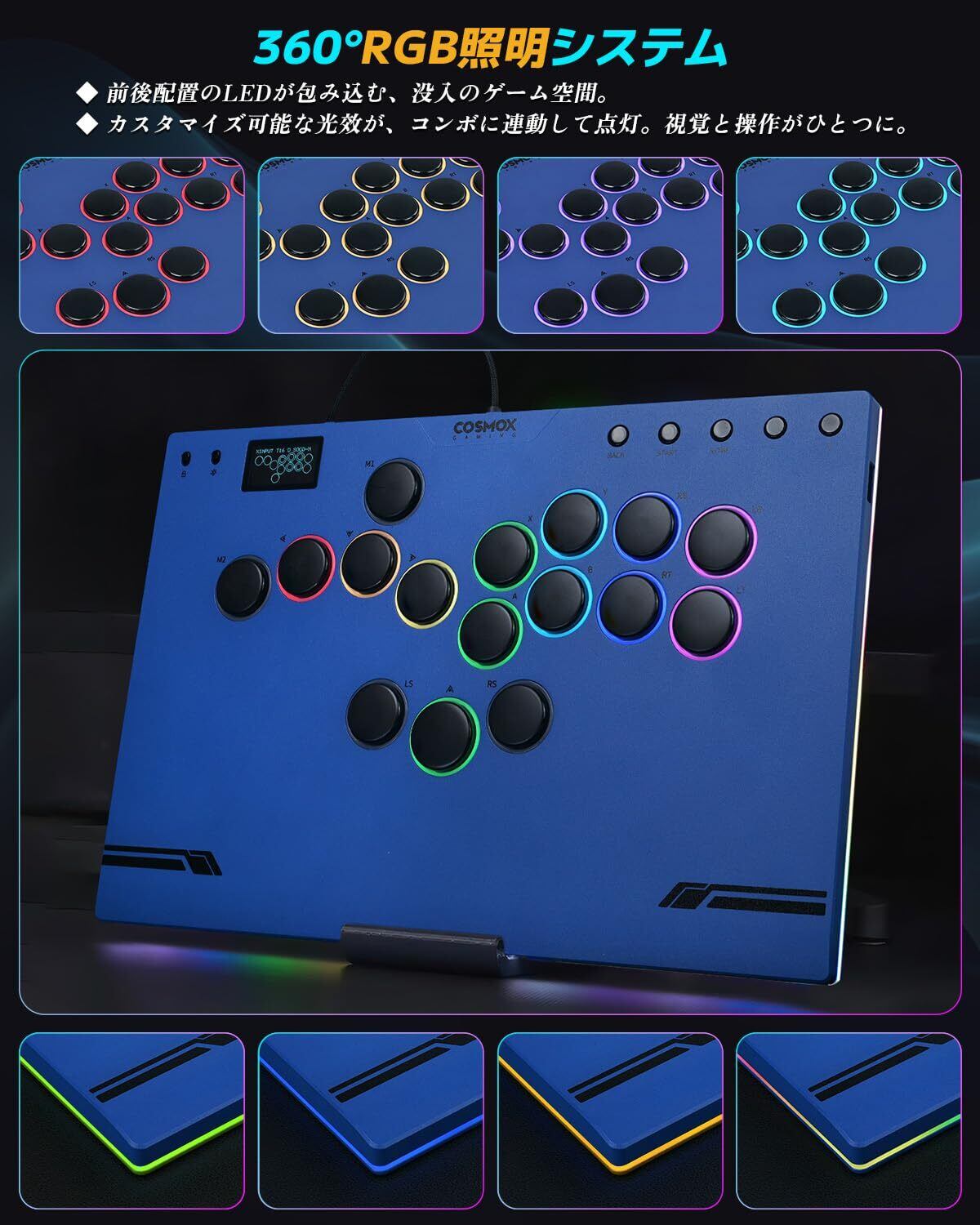 「同梱内容」本体(16ボタン)、3m Type-Cケーブル、Shadow huntingスイッチ(予備2個)、スイッチ引き抜きツール、日本語取扱説明書。※ご注意PS4/PS5/Xboxシリーズへの接続には別売りのコンバーター(Booter5等)が別途必要です。詳細はメーカー公式サイト(haute42-cosmox)でご確認ください。