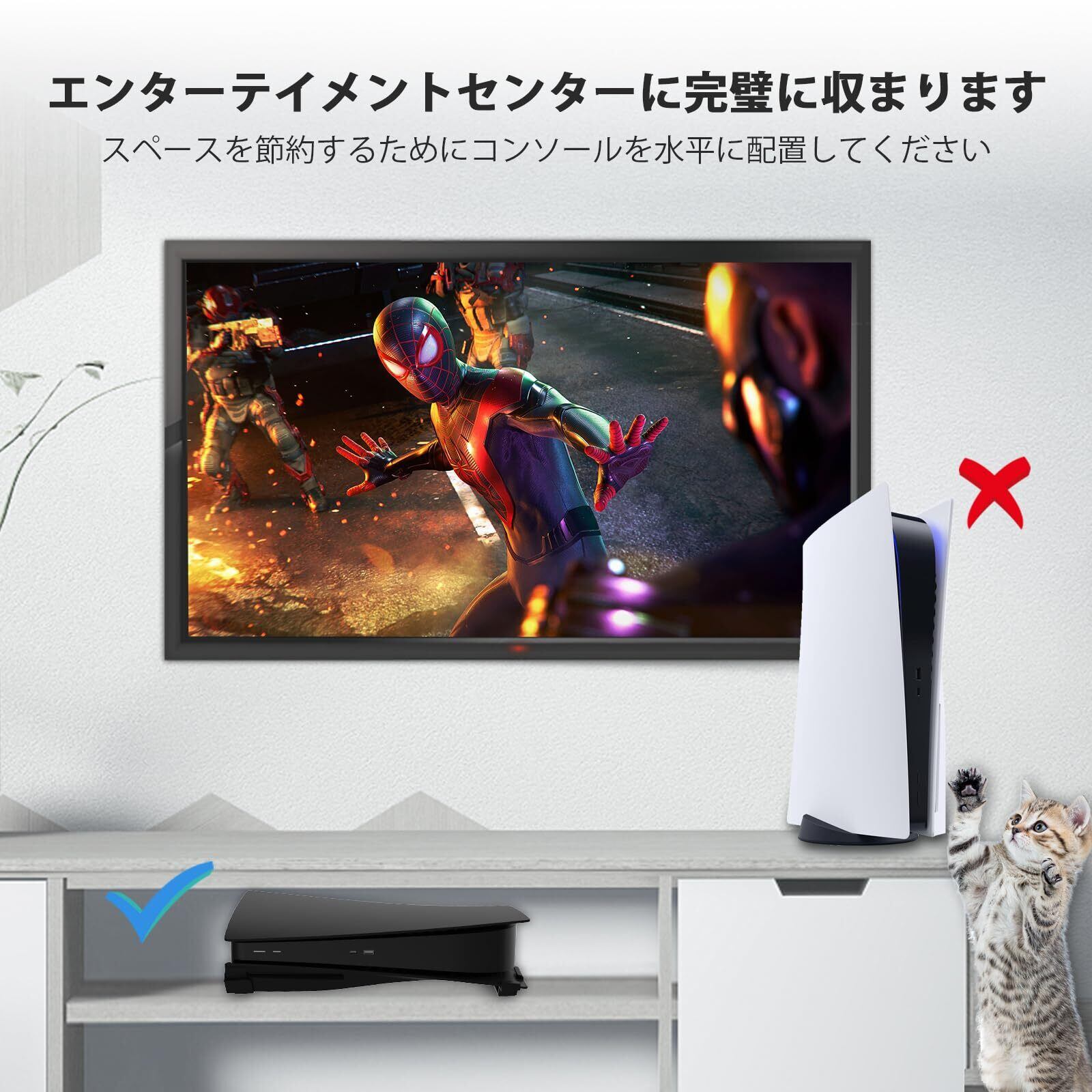 【PS5を保護】このスタンドはPS5コンソールを横置きに配置でき、ボトムパネルを傷から守ります。 これにより、コンソール周りの空気の流れが改善され、放熱性が向上します。注:本商品は2023新型PS5と互換性がありません