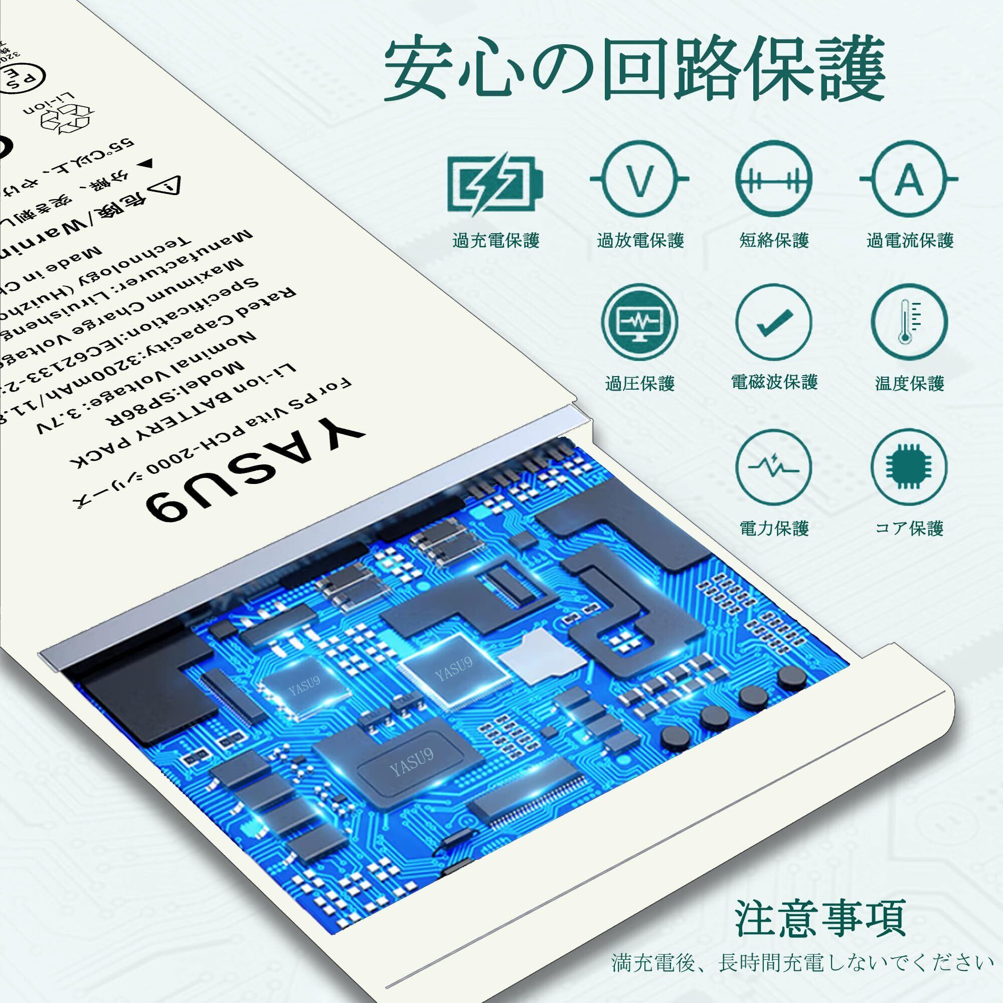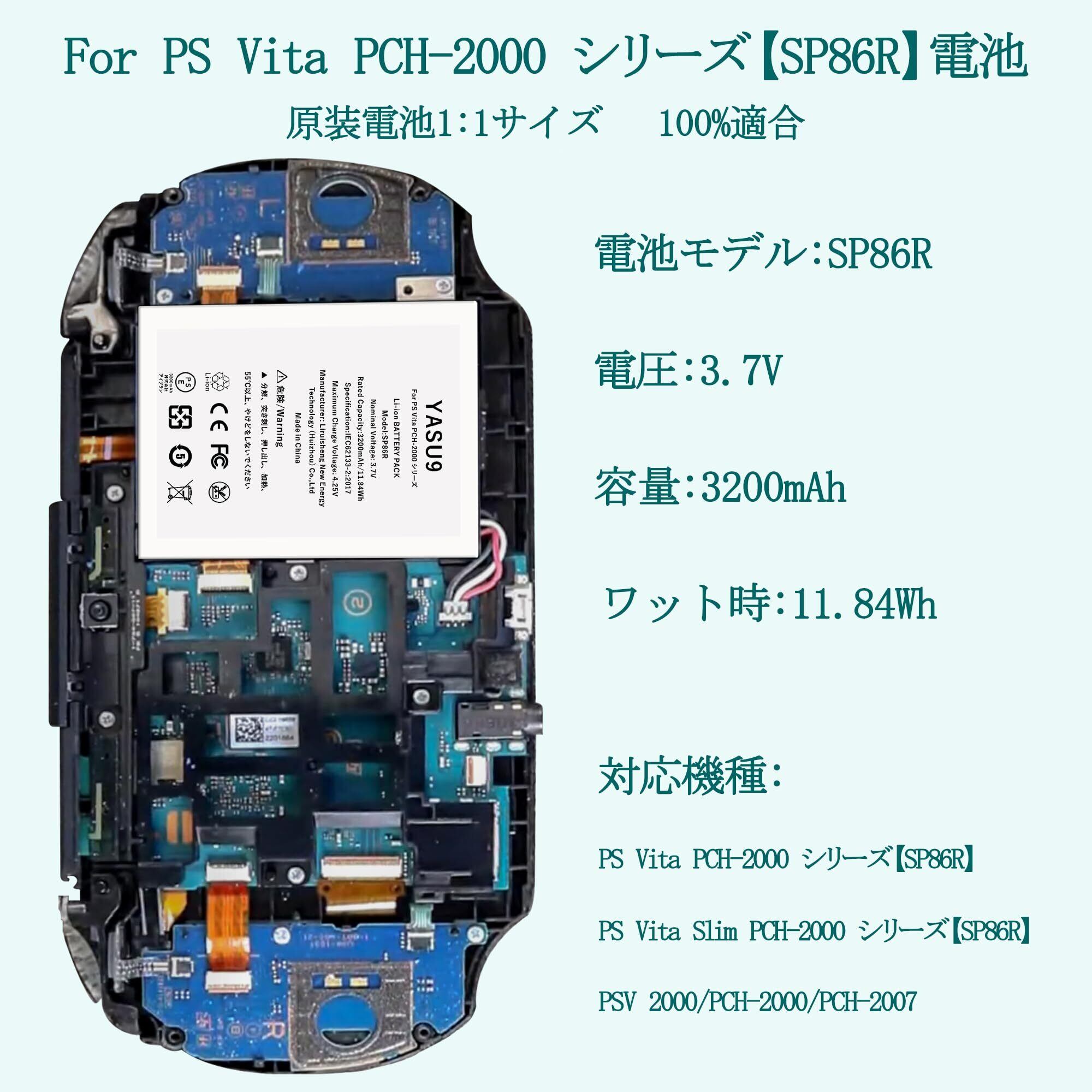 【新着商品】YASU9 for Sony PS Vita PCH-2000 バッテリー互換 大容量3200mAh 増量990mAh 増加44.8% 3.7V SP86Rバッテリー PSE認証 適用PS Vita Slim/PSV2000/PCH-2000/PCH-2007等機種 交換修理用 対応Vita PCH-2000電池【No Tool】