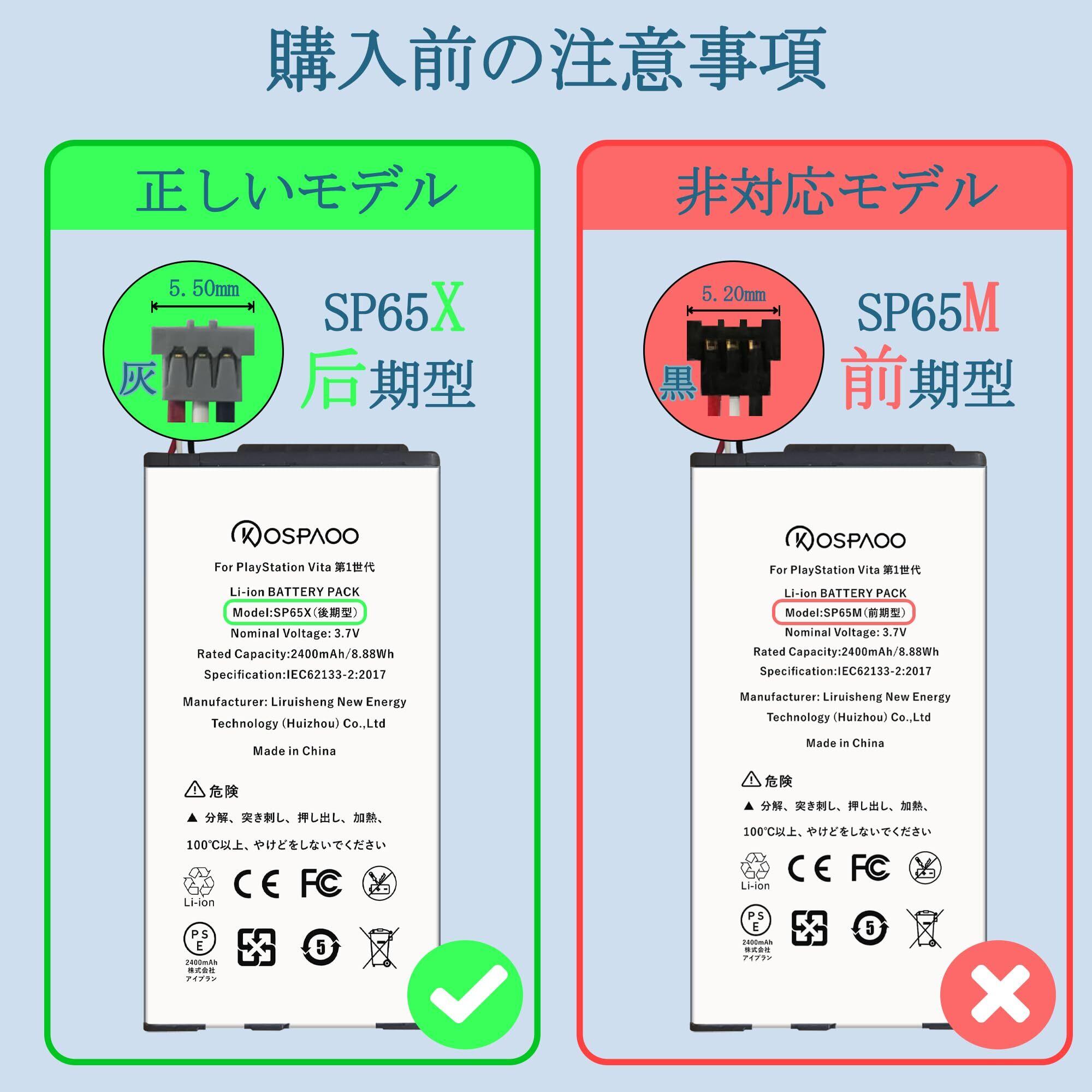 【新着商品】for Sony PlayStation Vita PCH-1000【SP65X后期型,日本版専用】バッテリー 第1世代 交換 大容量2400mAh 3.7V 増量8.6% SP65X電池 対応SP65Y電池 PSE認証 対応SRS-LSR100/PCH-1100(日本版)機種 互換修理用 高温・低温耐性 適用PS Vita PCH-1000 battery【No Tool】