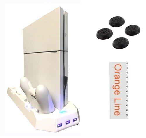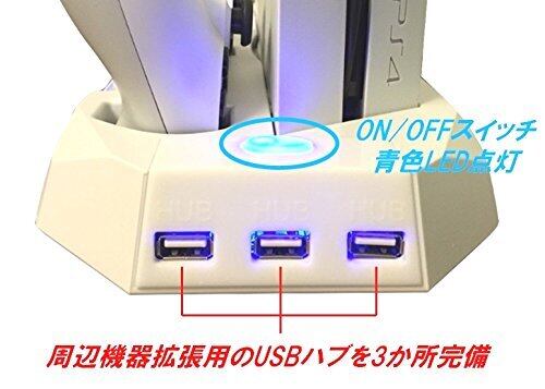 PS4 初期型用 多機能縦置きスタンド コントローラー2台充電 USBハブ3ポート 【騒音ファン無し】【日本企業による販売】【ホワイト ver.2 】