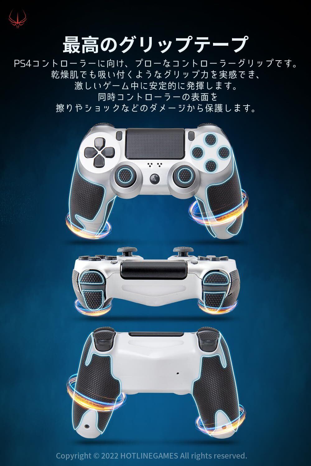 【グリップ力進化&全面保護】PlayStation4コントローラーに向け、プローなコントローラーグリップシールです。HotlineGames独自の0.6mm極薄材料を採用しており、グリップ力を大幅に強化し、乾燥肌でも吸い付くようなグリップ力を実感でき、激しいゲーム中でも安定的に発揮します。傷きつやすい部分をカバーすることで、ご愛用のコントローラーを擦りなどダメージから保護します。
