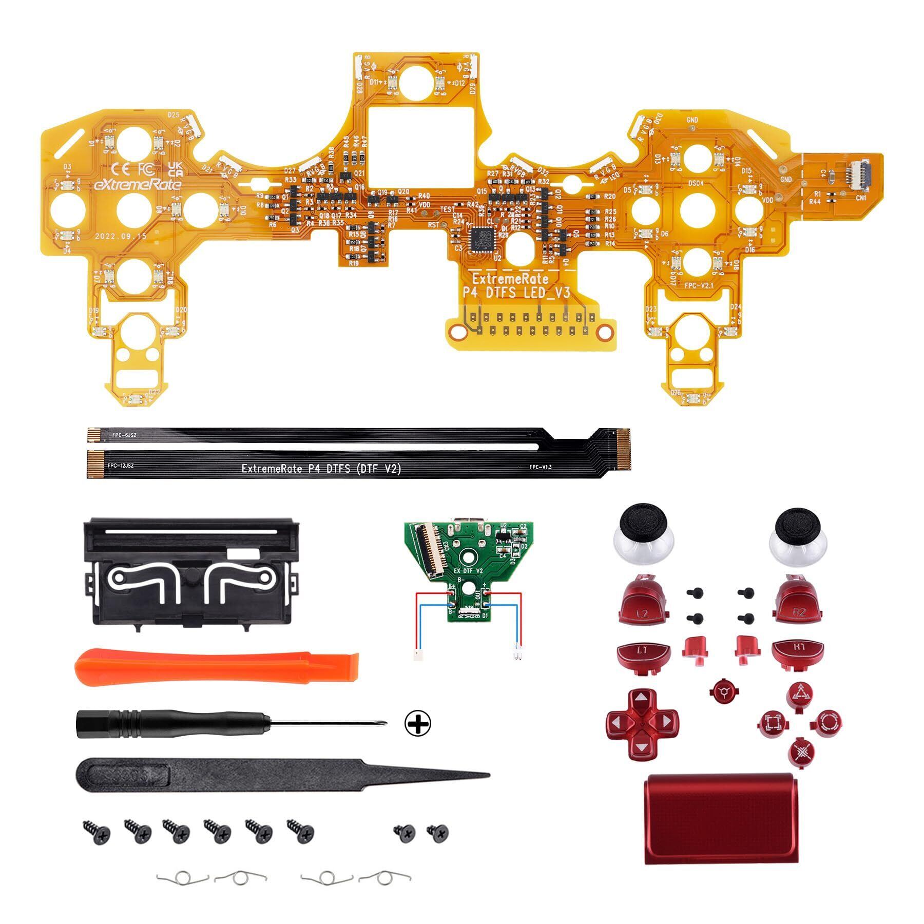 【特別価格】eXtremeRate ps4コントローラーに対応用マルチカラー発光D-padサムスティックトリガーホームフェイスボタン、ps4 Slim Pro CUH-ZCT2コントローラーに対応用DTFS (DTF 2.0) LEDキット【スカーレットレッド】