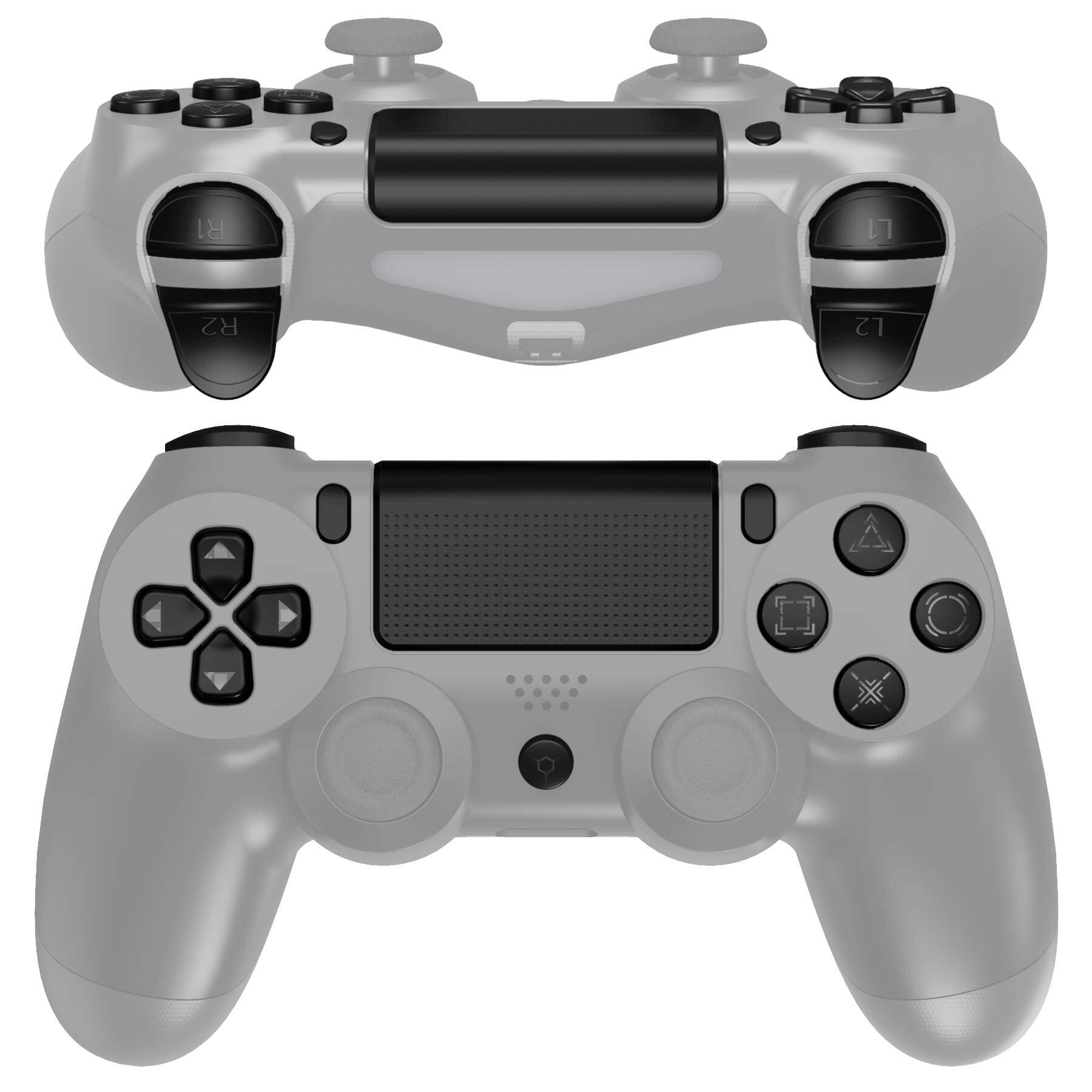 eXtremeRate ps4 Slim Pro CUH-ZCT2コントローラーに対応用クラシックシンボル交換ボタンフルセットレーザー彫刻、eXtremeRateのps4 DTFS LEDキットに対応できます。(コントローラーは含まれていません。)【シンボルある-ブラック】