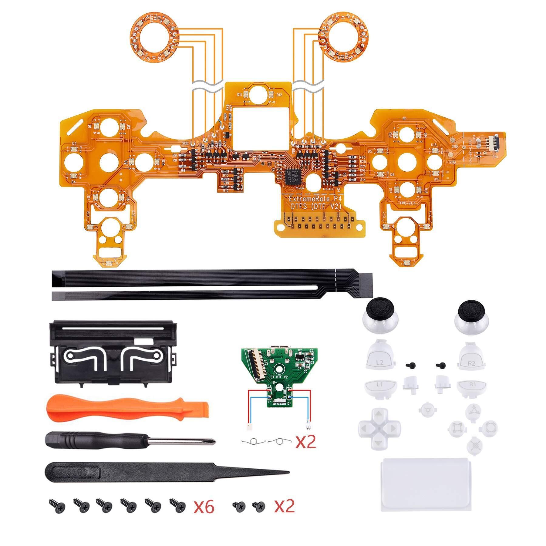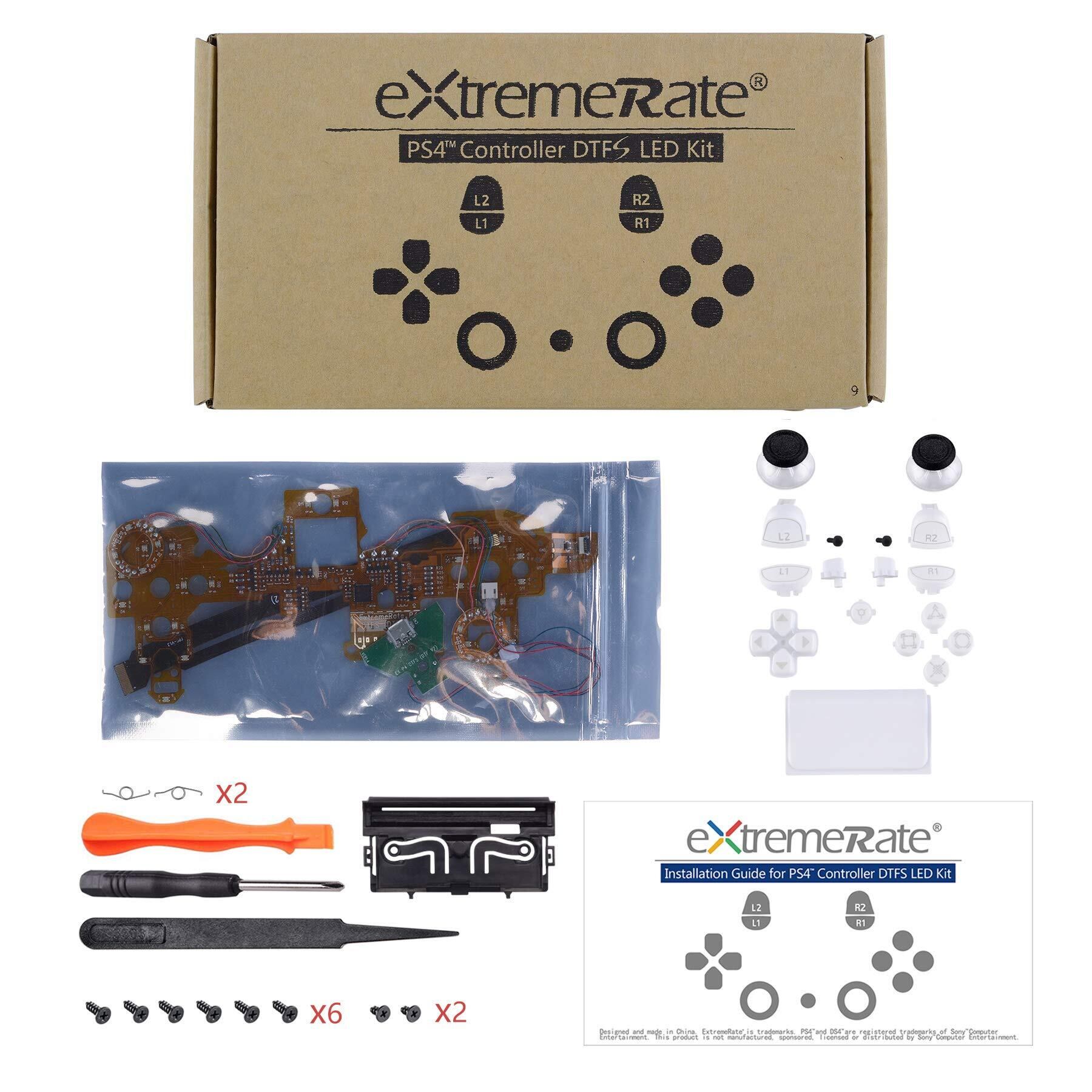 【特価セール】eXtremeRate ps4コントローラーに対応用マルチカラー発光D-padサムスティックトリガーホームフェイスボタン、ps4 Slim Pro CUH-ZCT2コントローラーに対応用DTFS (DTF 2.0) LEDキット【ホワイト】