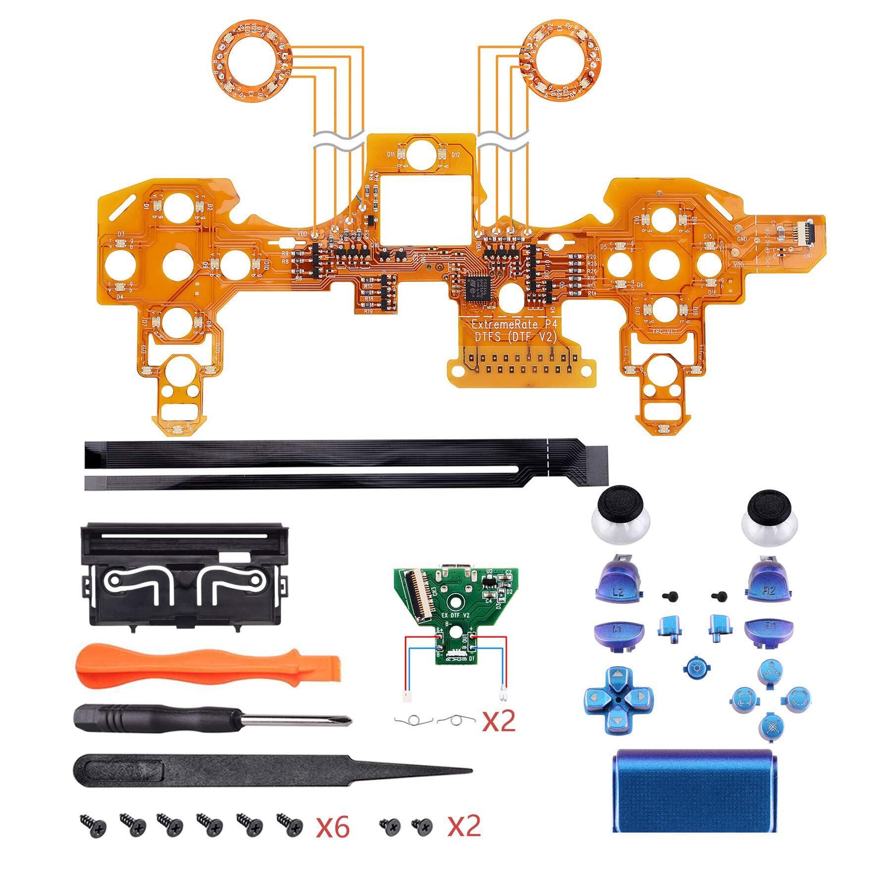 eXtremeRate ps4コントローラーに対応用マルチカラー発光D-padサムスティックトリガーホームフェイスボタン、ps4 Slim Pro CUH-ZCT2コントローラーに対応用DTFS (DTF 2.0) LEDキット【カメレオン】
