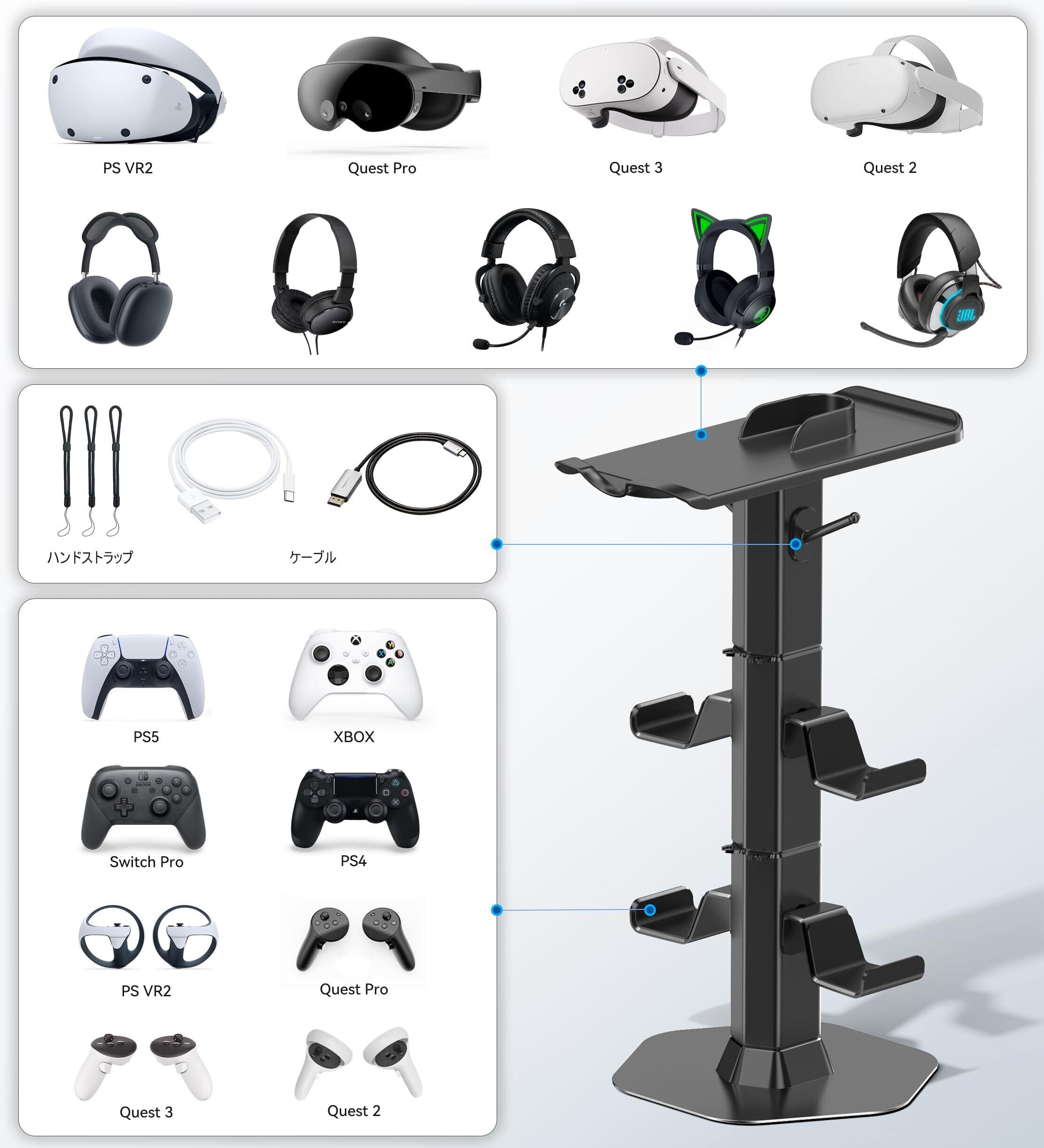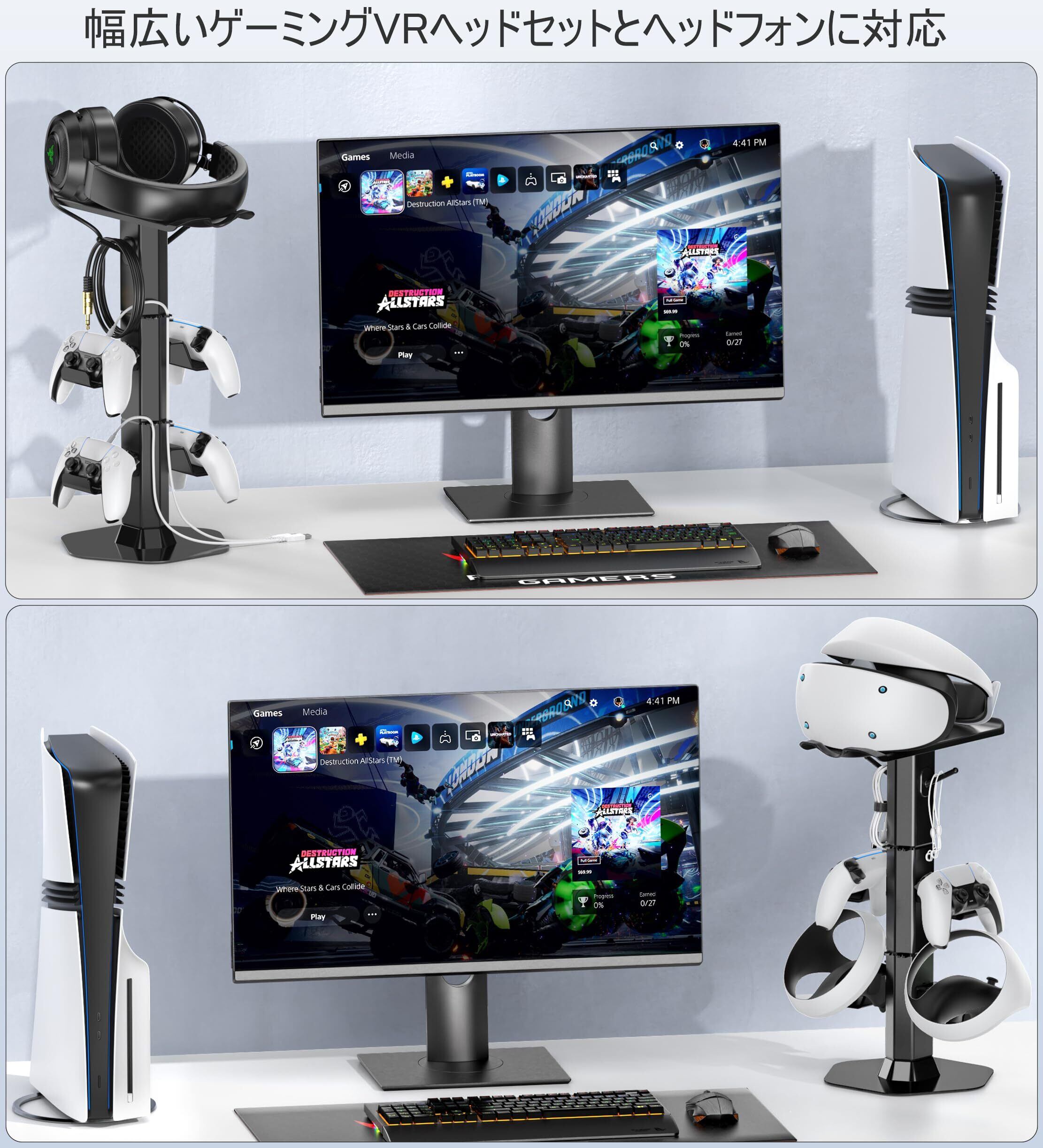 コントローラー スタンド ゲームコントローラー 収納ラック ヘッドホン ヘッドセット ホルダー PSVR2用収納スタンド 組み立て簡単 頑丈で安定 省スペース 整理整頓 幅広くコントローラーに対応
