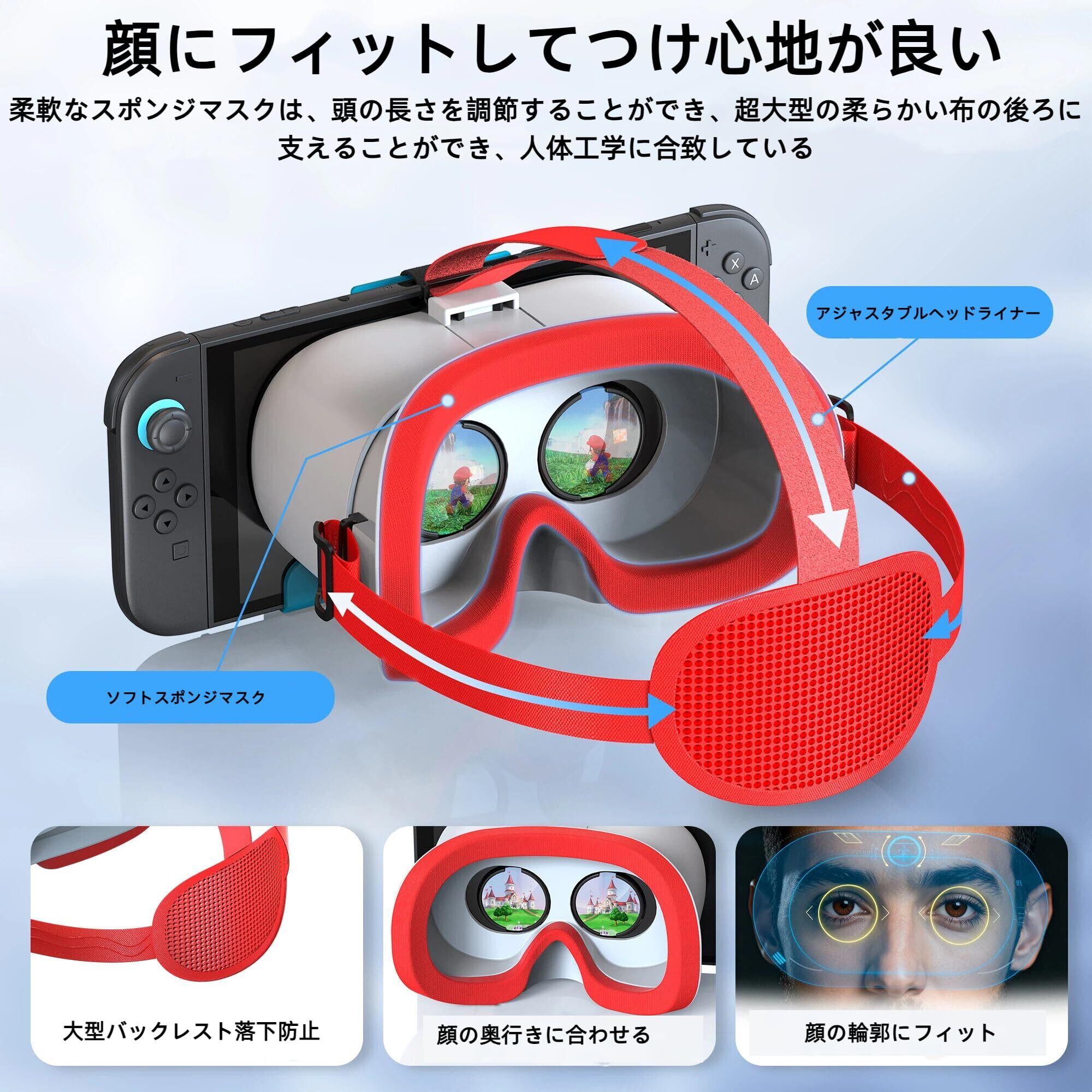 【特定のVRゲームをサポート】: VRモードをオンにして、スーパーマリオオディッセイ、ブレース・オブ・ザ・ワイルド、スーパースマッシュブラザー、スパイス・アンド・ウォルフ、キャプテン・トッド、ラボVRまたは他のスイッチVRゲームを体験してください。 (注:ゲームをプレイする前にVRモードに設定してください。)