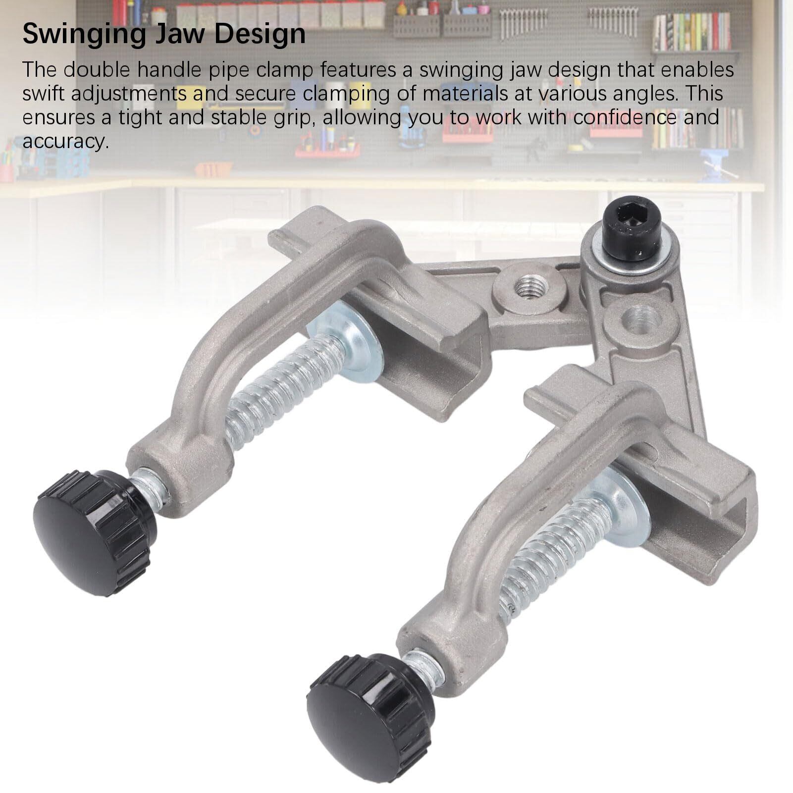 ダブルハンドルパイプクランプアルミダイカストスイングジョーデザイン木工溶接10-180°、コンパクトで軽量、頑丈な構造、調整可能な機能、信頼性の高いパフォーマンスを備えた多用途ツール、金属加工およびフレーム組み立て用