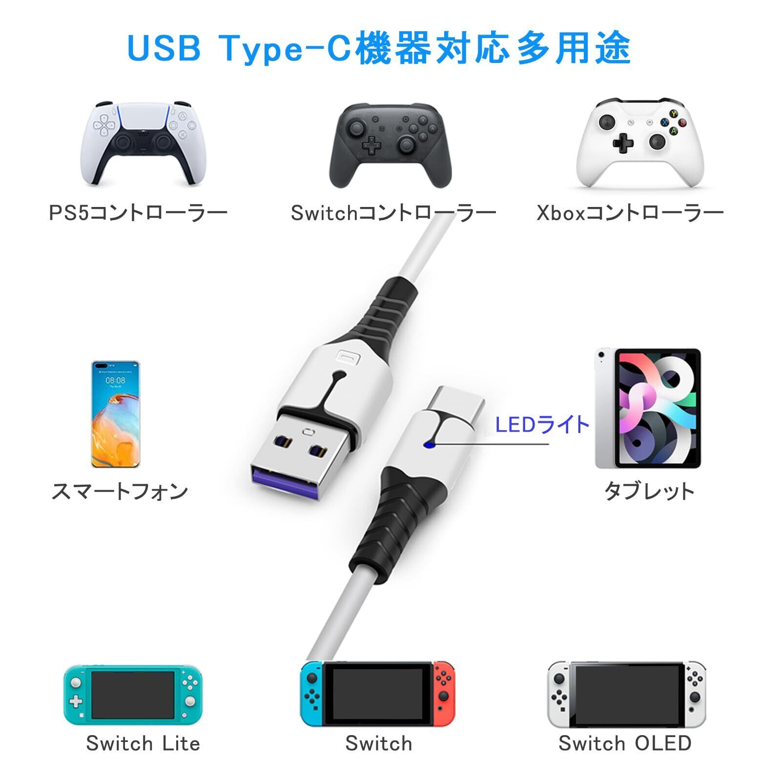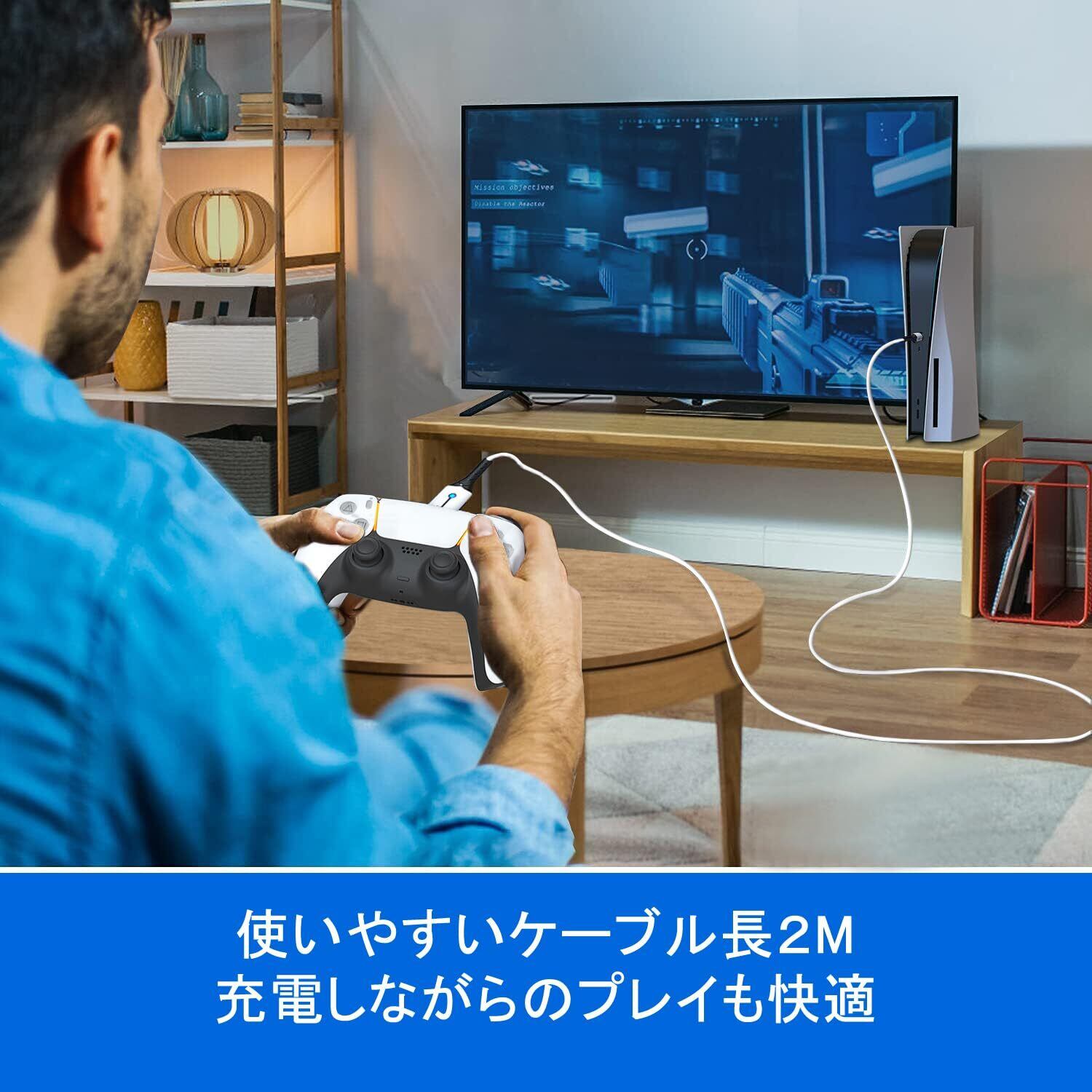 PS5 コントローラー用 充電ケーブル 2M Switch/Xbox Series/PS5 DualSense コントローラー などUSB Type-C機器対応 急速充電コード