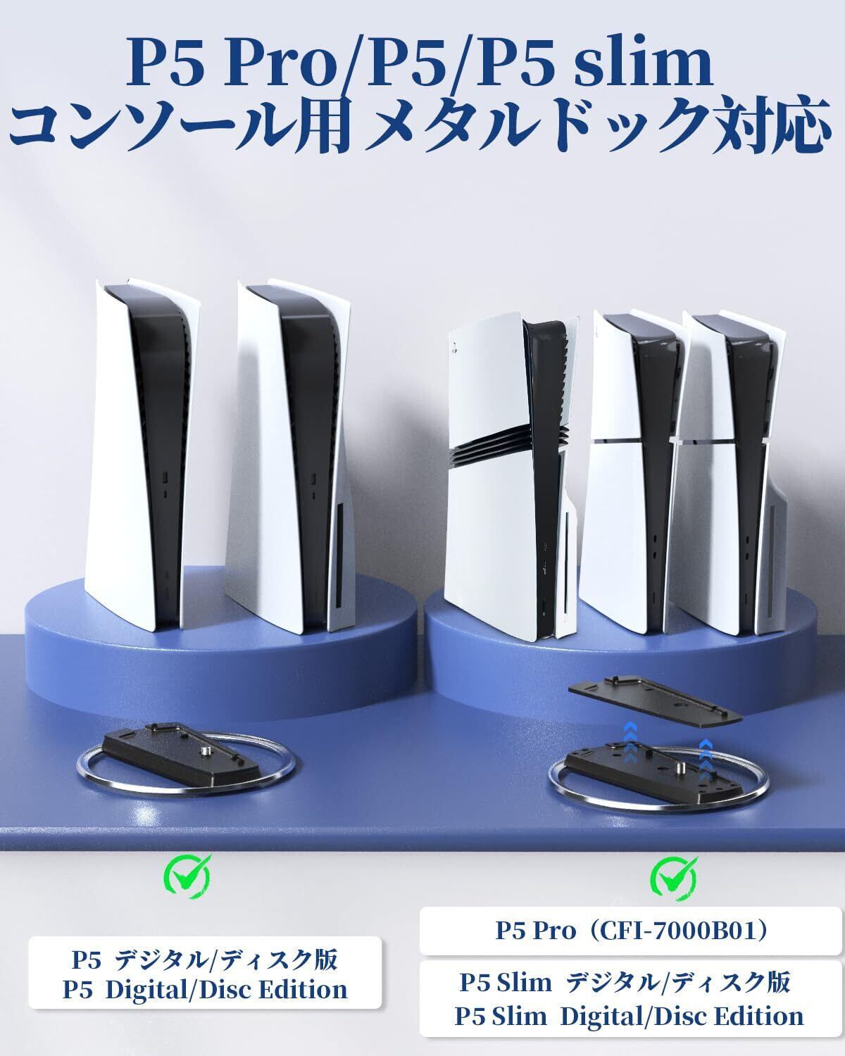 【幅広い互換性】:P5 Pro/P5 SlimとP5コンソール(ディスク版とデジタル版)に対応するように慎重に作られた先進的なPS5コンソールスタンドをリリースしました。 重いものを掛けても安定したバランスを保つことができます。注:製品にはメタルベースのみが含まれ、コントローラー、ヘッドセット、紙版のマニュアルは含まれません。