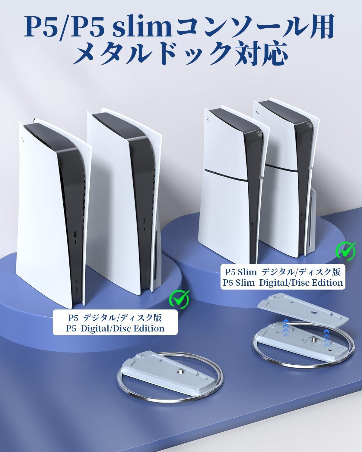 【幅広い互換性】:P5 Pro/P5 SlimとPS5コンソール(ディスク版とデジタル版)に対応するように慎重に作られた先進的なP5コンソールスタンドをリリースしました。 重いものを掛けても安定したバランスを保つことができます。注:製品にはメタルベースのみが含まれ、コントローラー、ヘッドセット、紙版のマニュアルは含まれません。