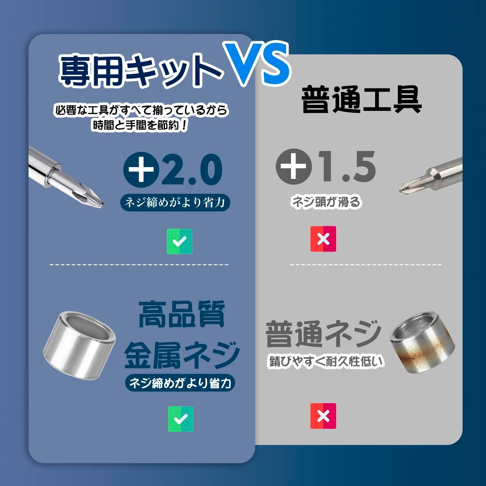 簡単な取り付け: 必要な工具とパーツがすべて含まれているため、追加購入は不要。