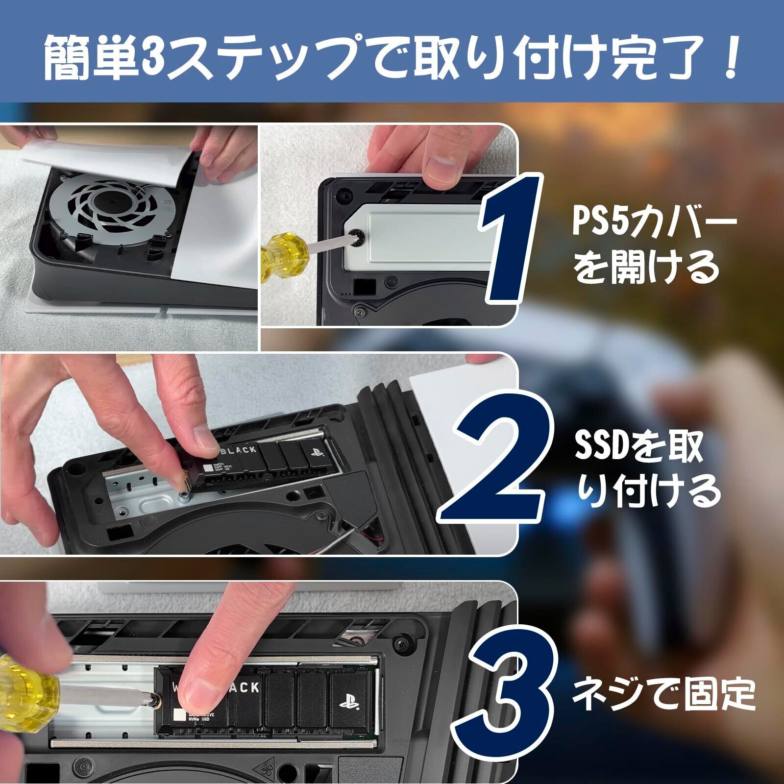 PS5、PS5 Slim、PS5 Proのストレージを簡単にアップグレード! PS5 M.2 SSD 取り付けキットは、PlayStation5コンソール専用に設計されたオールインワンキットです。M.2 SSDを取り付けてストレージ容量を拡張し、より多くのゲーム、アプリ、メディアを保存できます。