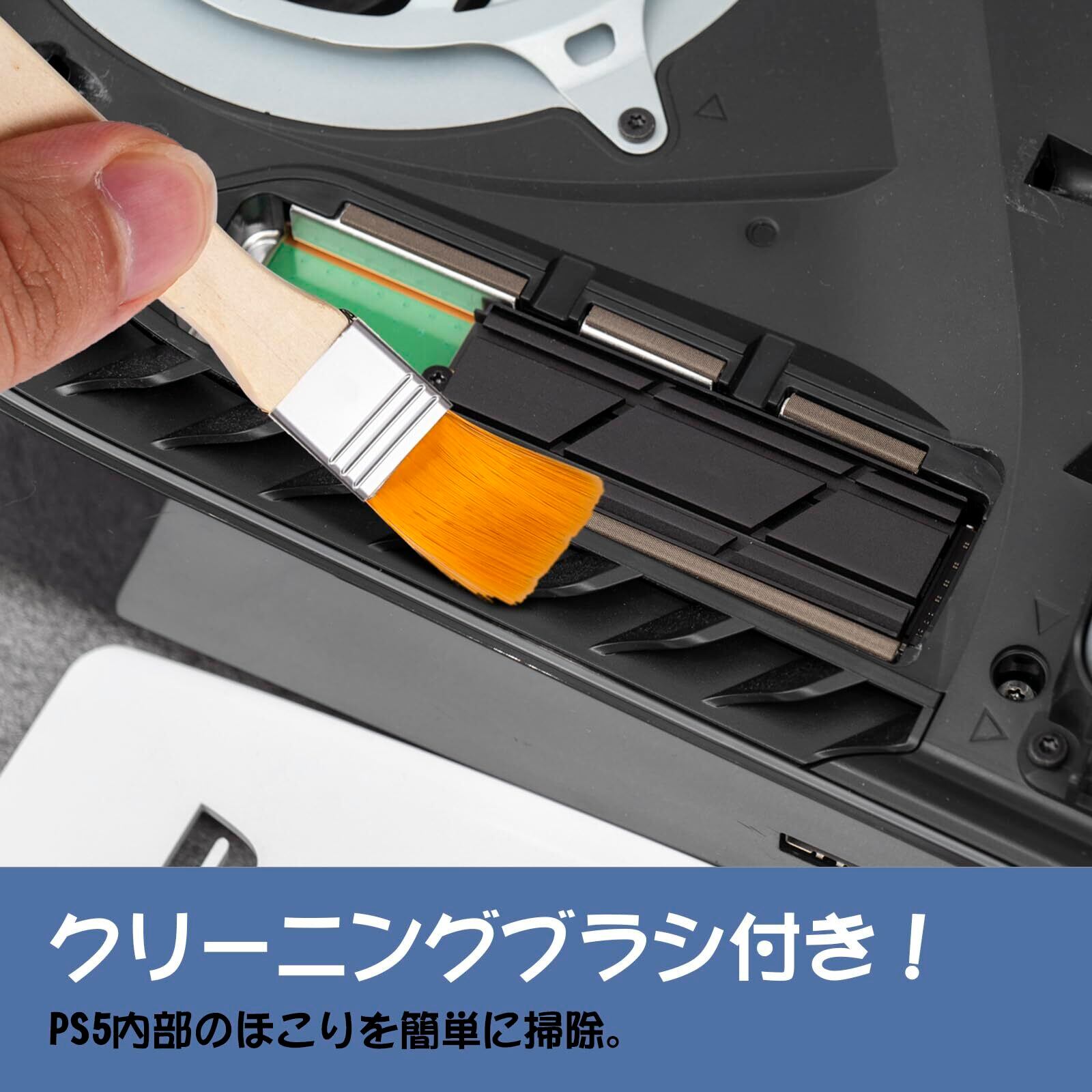 ③メンテナンス機能強化: 付属のクリーニングブラシでPS5内部のほこりを取り除き、最適な空気流とパフォーマンスを維持。