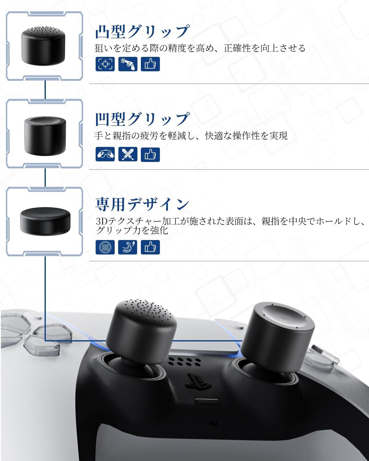【 人間工学に基づいたグリップデザイン】: 高さと接触面が異なるジョイスティックキャップは、ターゲットを素早く狙い、精度を向上させ、より適切な動作を可能にします。外側に曲げる(凸面)、内側に曲げる(凹面)、平ら、高い。ジョイスティックキャップ表面のドット&スタッドデザインは、親指を中央に配置することで、抵抗を高め、プレー中の指の滑りを防止します。ジョイスティックキャップ上部の凹型テクスチャーデザインは、親指を中央に配置し、プレー中の指の滑りを防止。入力の正確性と反応性を高め、射撃の精度を向上。人間工学に基づいて設計されています。