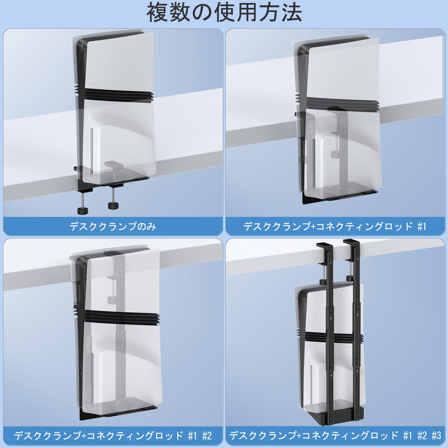 【デスク下スペースを活用】PS5収納ラック調節可能なデスククランプを備えており、さまざまな厚さのデスクに柔軟に対応できます。PS5マウントはしっかりとPS5を収納され、デスク下のスペースを最大限に活用します。