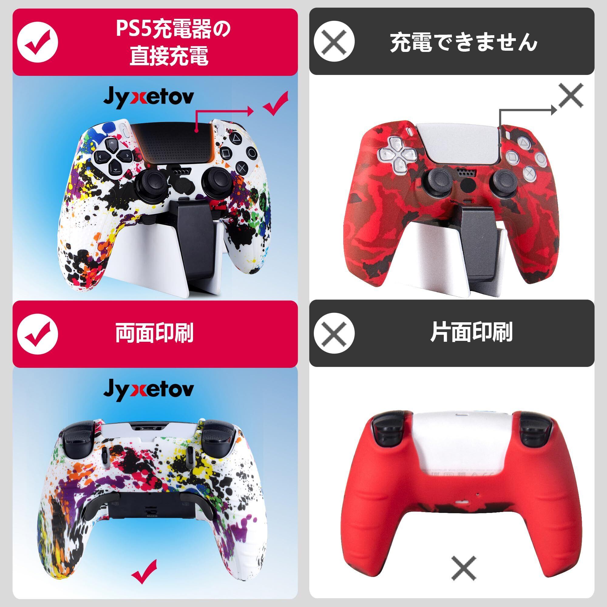 【2025最新】JYXETOV PS5 Edgeコントローラー カバー、人間工学に基づいた、シリコーン保護、無料の8ボタンキャップ、オリジナルの充電器で充電できます、滑り止めデザイン、両面印刷パターン