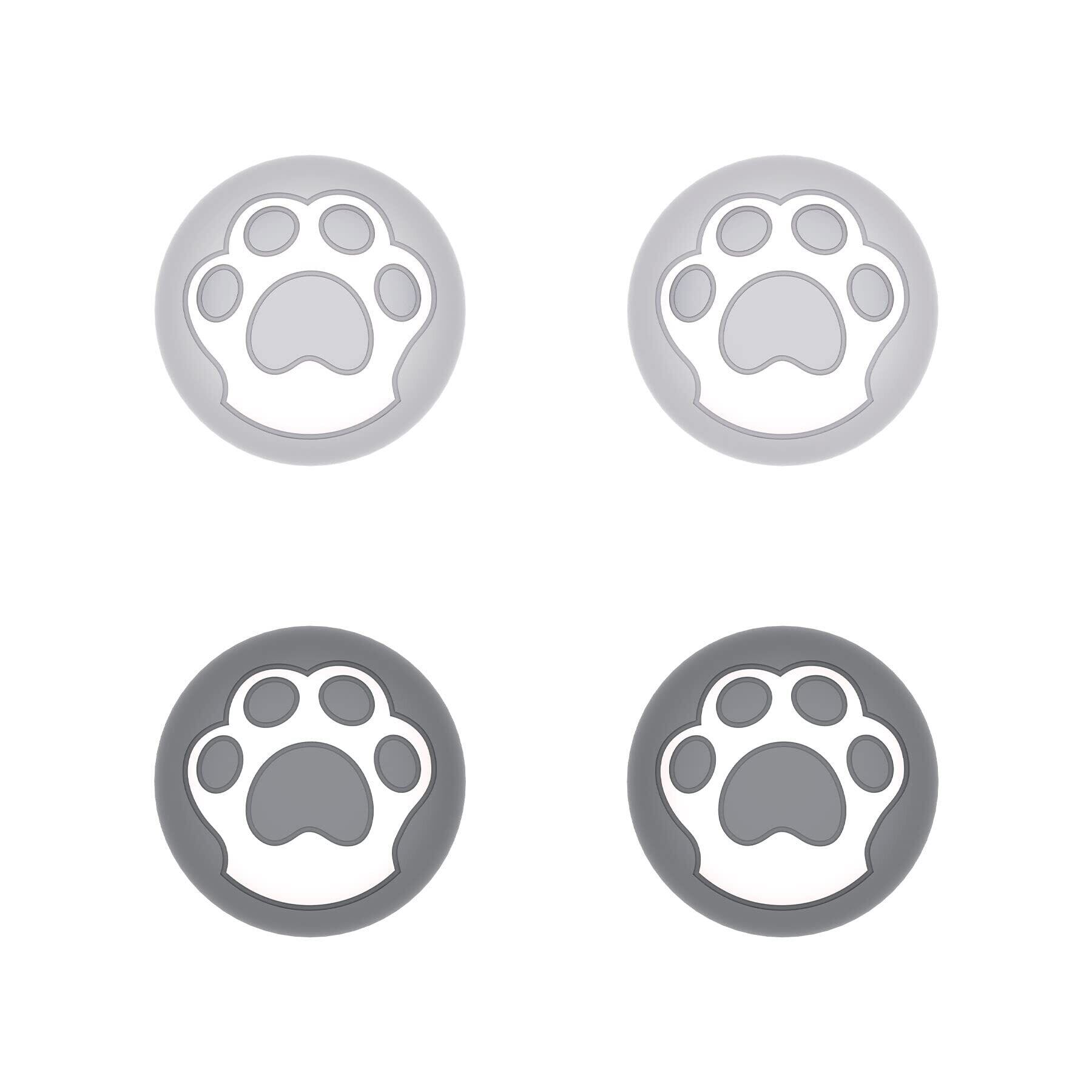 PlayVital ps5とps4コントローラーに対応用可愛いサムグリップキャップ、XboxシリーズX/Sコントローラーに対応用シリコンアナログスティックキャップカバー、Switch Proコントローラーに対応用サムスティックキャップ【猫の肉球パタン】グレー