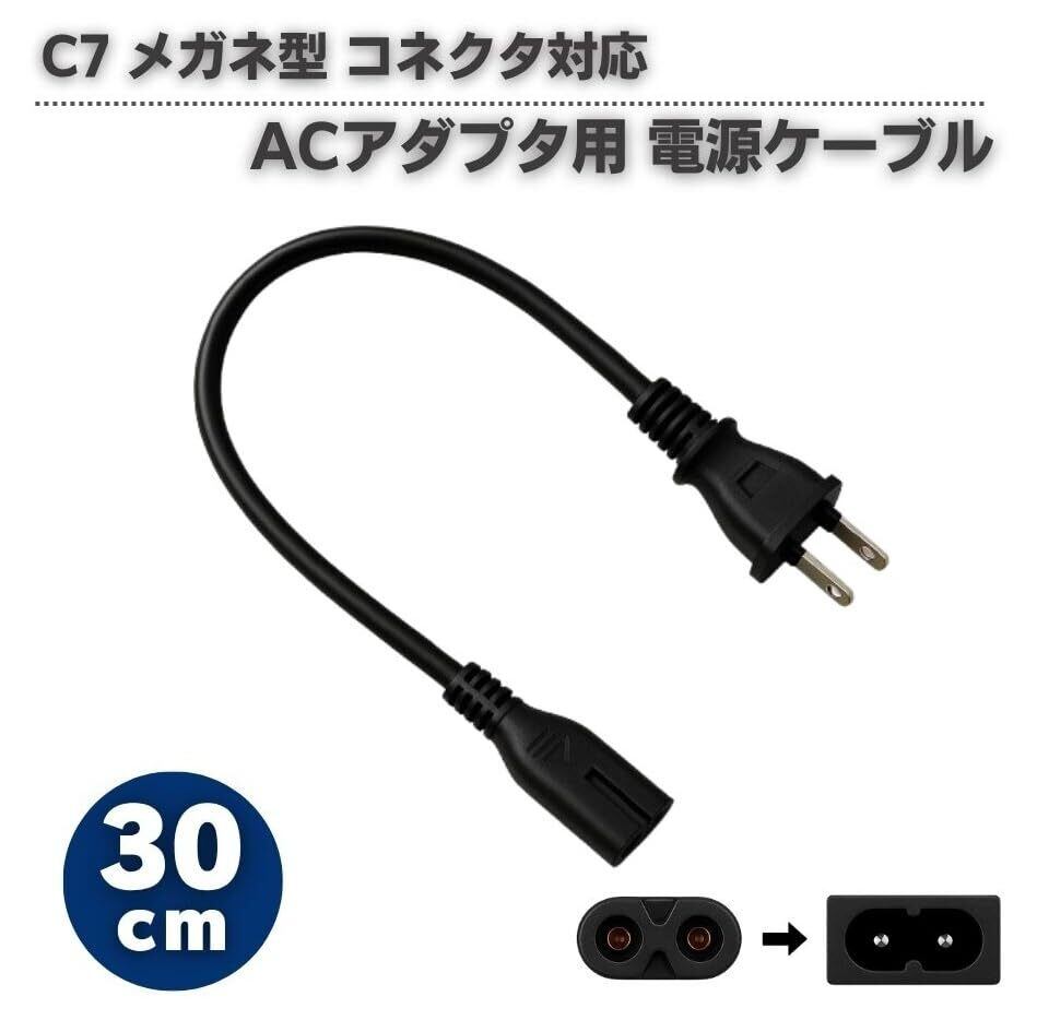 【新着商品】KSSA 互換品 30㎝ ACアダプタ用 電源ケーブル 2Pオス メガネ型 コネクタ対応 C7 メガネコード 短い PS5 PS4 PS3 PS2 PS1 PS Vita PSP (ブラック)