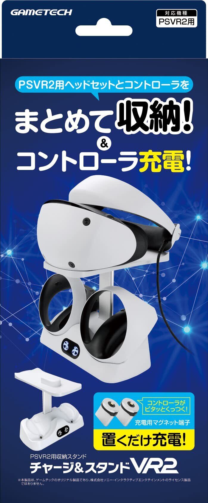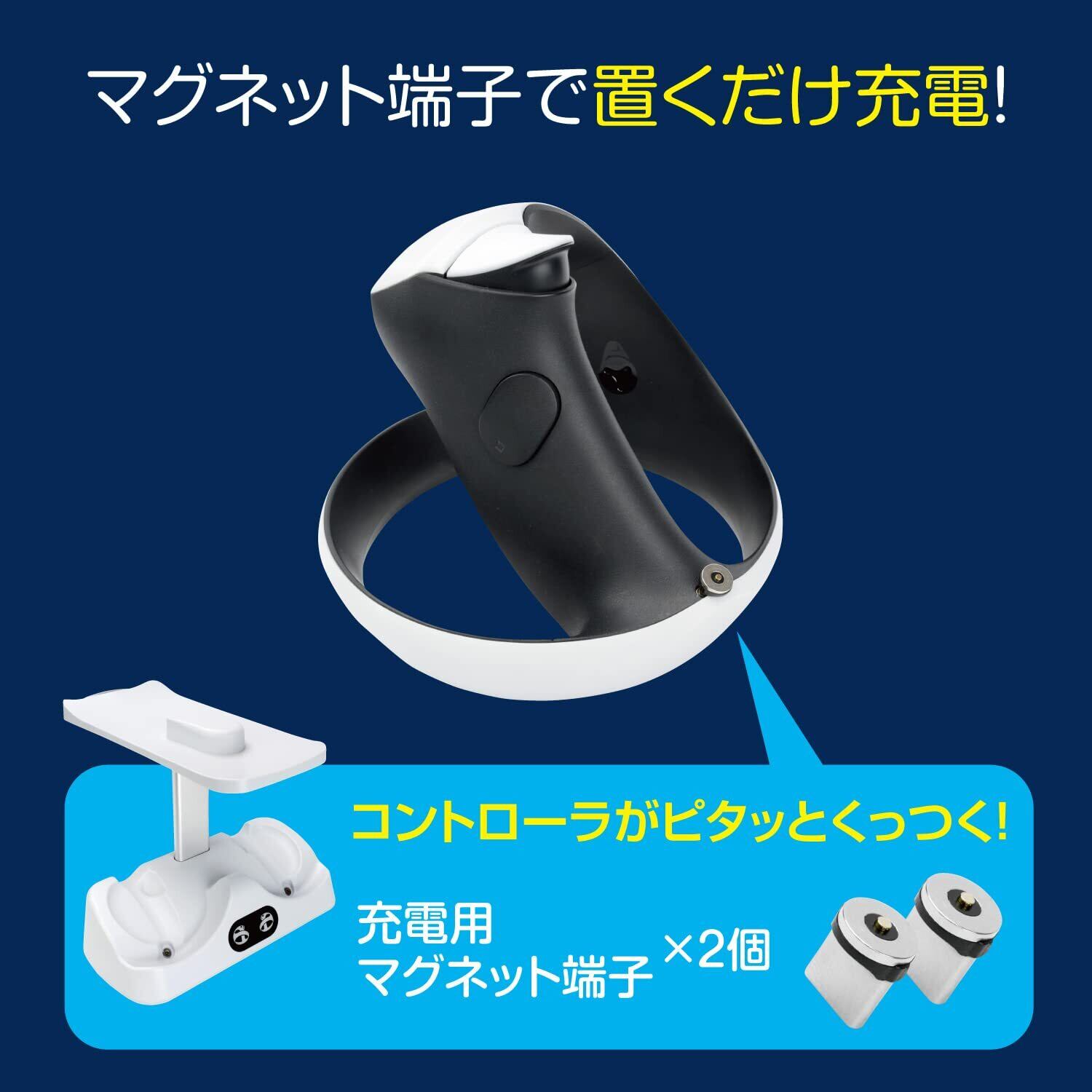 PSVR2対応コントローラとヘッドセットをスマートに収納します。<BR>マグネット端子でコントローラ2台を置くだけでラクラク充電が可能です。