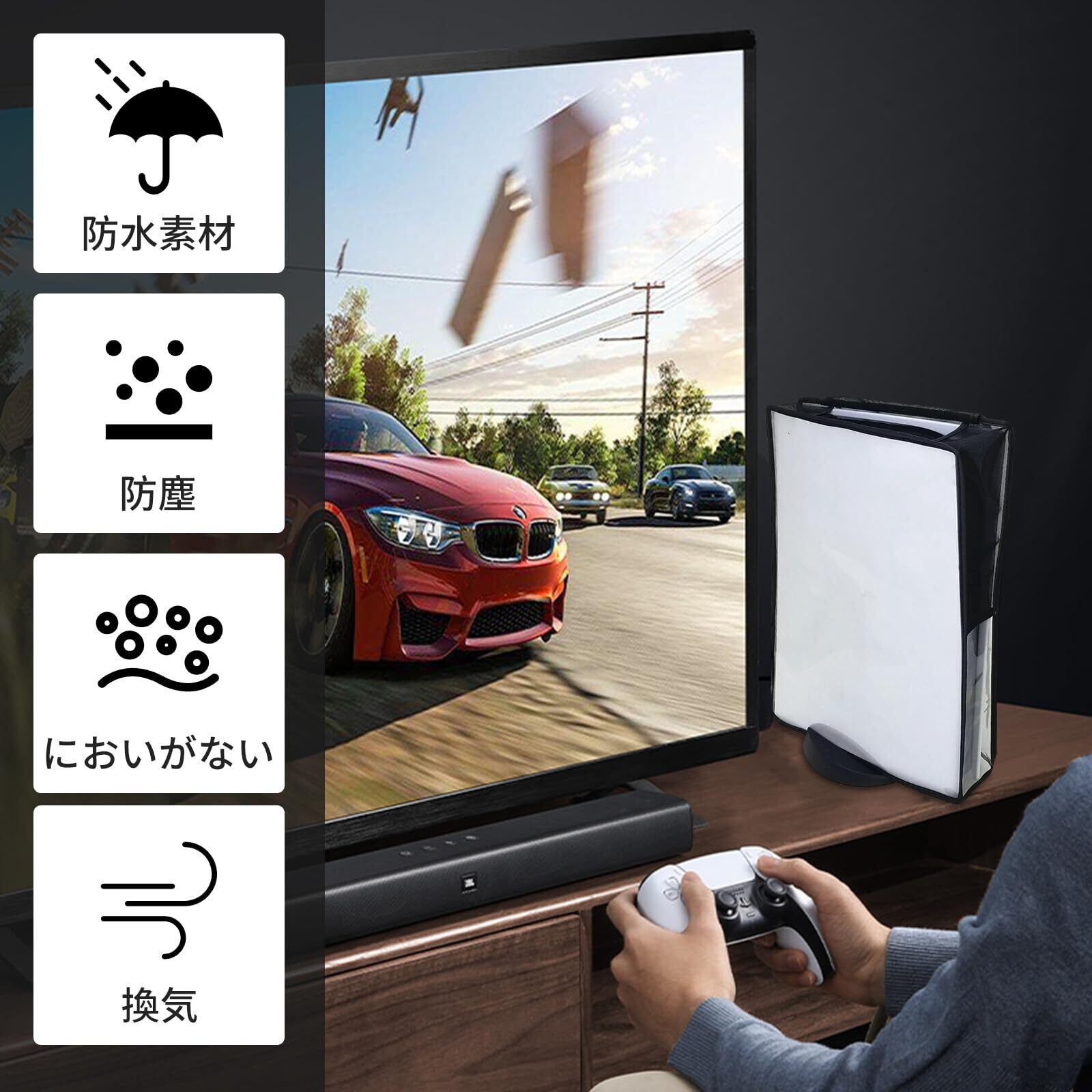 【防塵&通気性】あるブラックの通気メッシュ部分は、PS5本体の排熱に影響せず、外部からのほこりのはいるのを防止します。