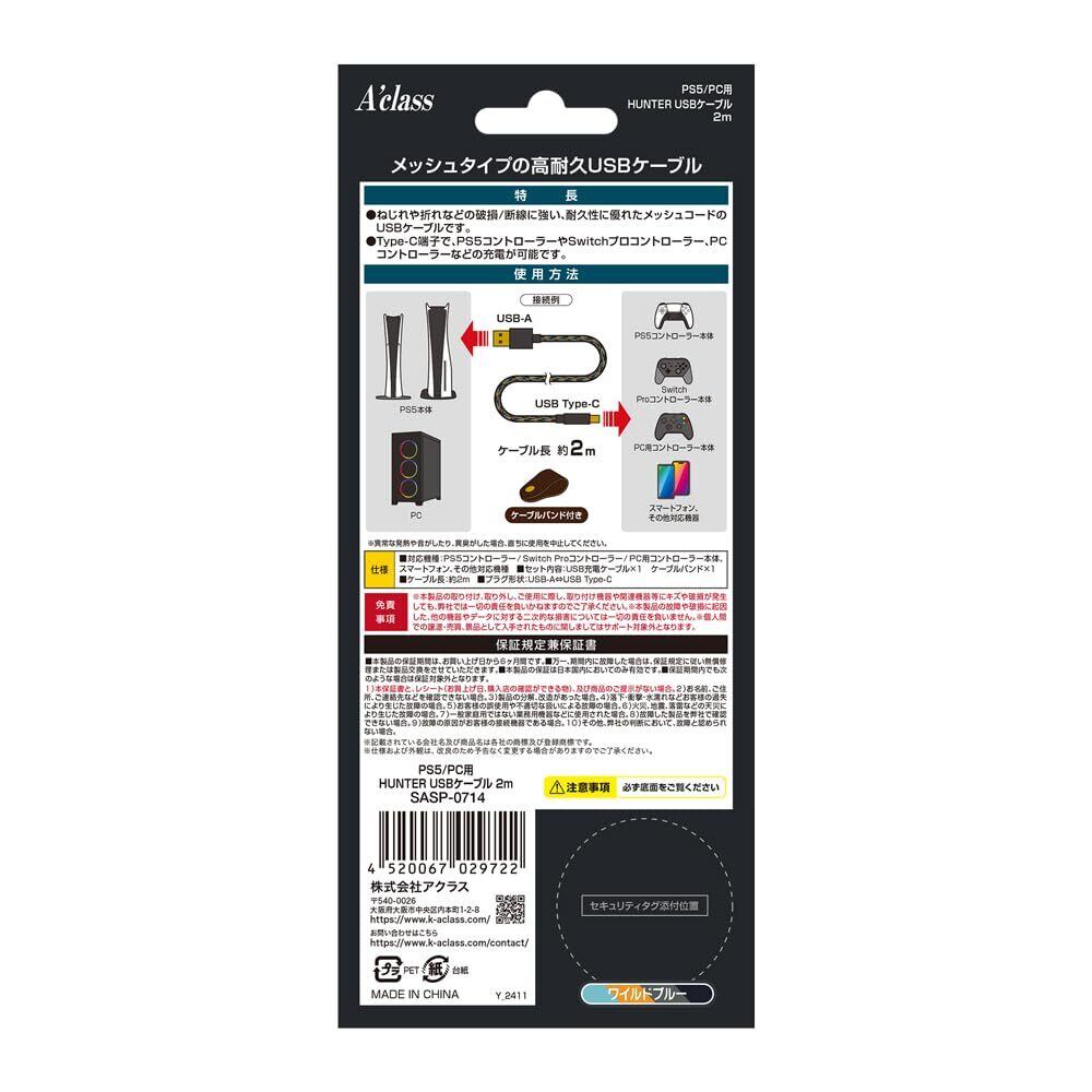 アクラス PS5/PC用/スマートフォン用 HUNTER USBケーブル 2m