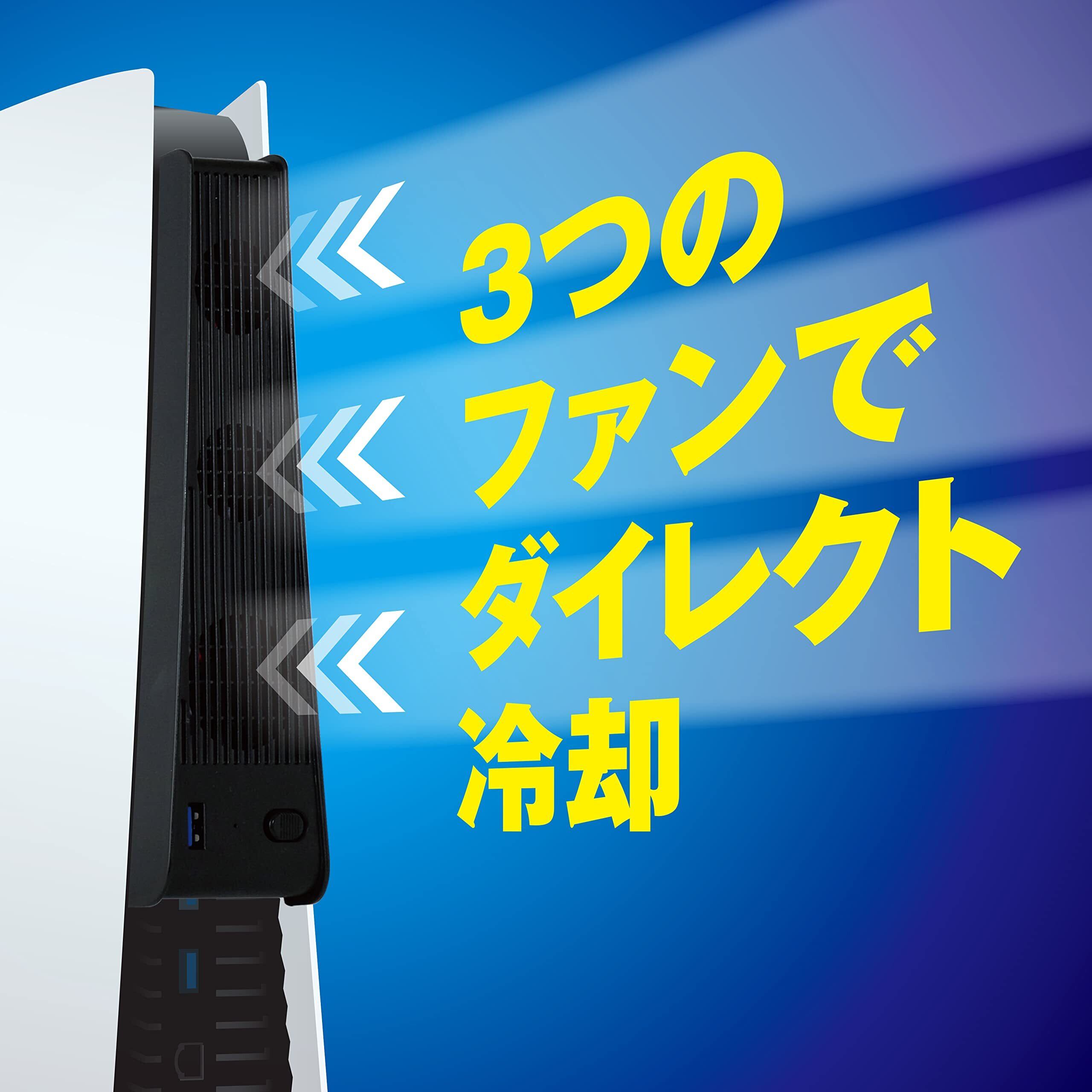 【本体の熱対策に】3つのファンによって本体をダイレクトに冷却できるため、長時間のプレイや外気温による、ゲーム機本体が熱くなる問題を解決してくれます。取り付けたファンがPS5本体の温度上昇を抑えることによって、熱による様々なトラブルを未然に防ぐことができます。