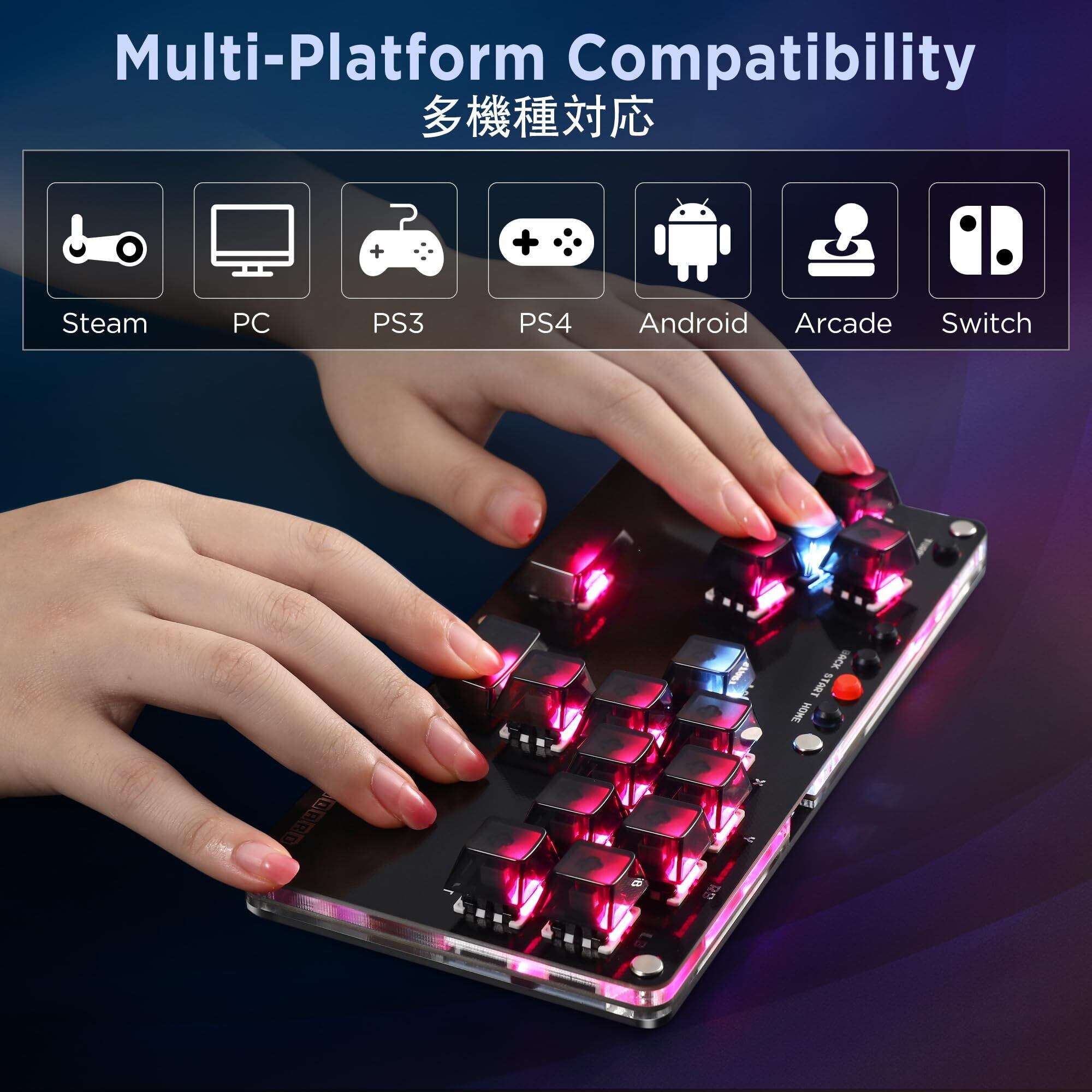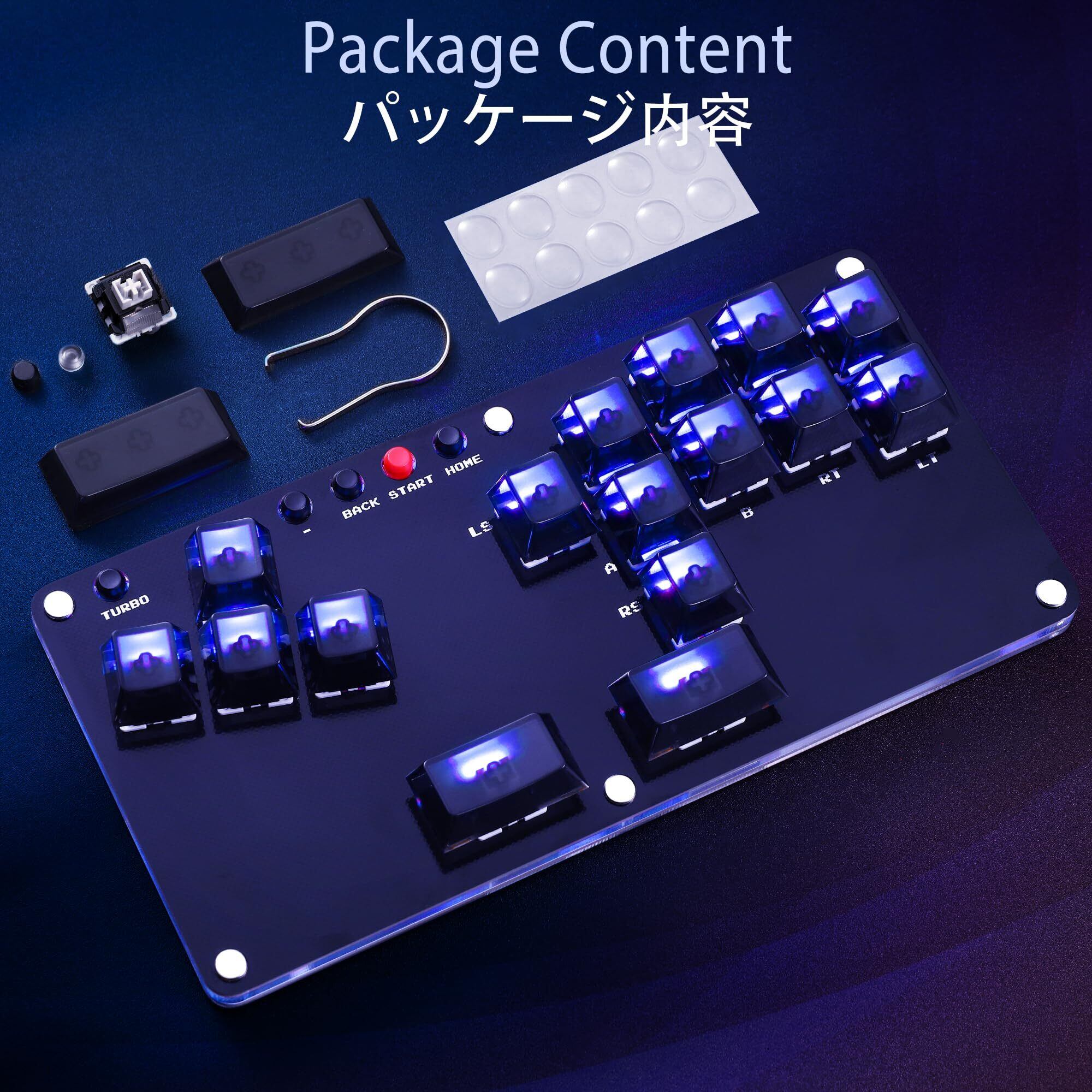 レバーレス アケコン レバーレス アーケードコントローラー 16ボタン for PC/Switch/PS4/PS3/Steam 薄型 軽量 ホットスワップ対応 RGBライトDIY 連射機能 日本語説明書付き