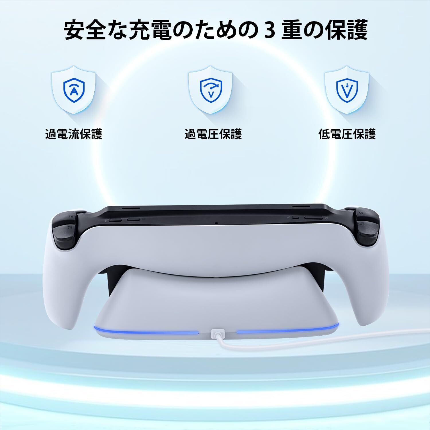 マルチプロテクション技術: デバイスの寿命を優先し、複数の保護機能を備えた充電ステーションです。高度な回路と内蔵の安全機能がPSポータルを潜在的な充電リスクから保護し、最適な性能と耐久性を確保します。