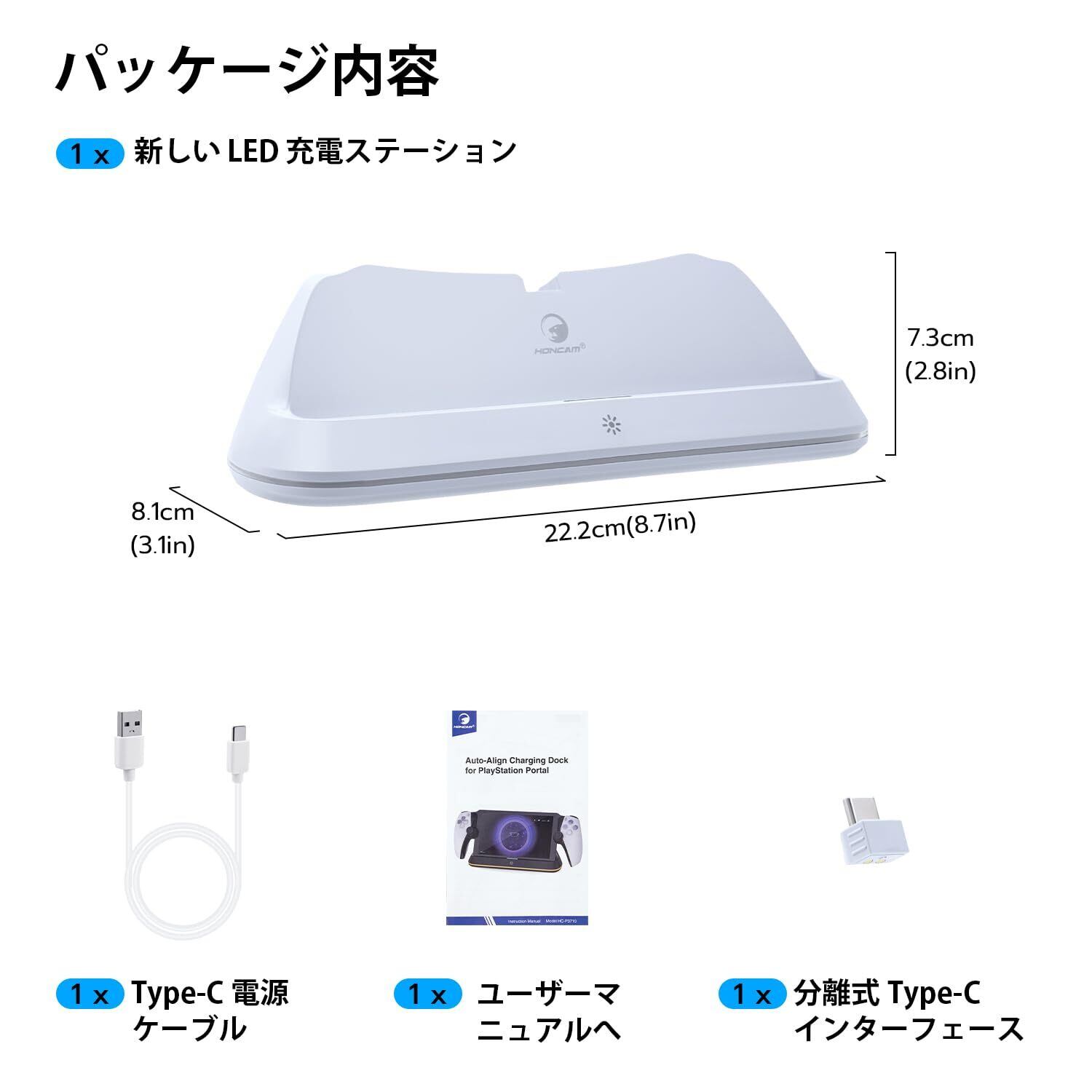パッケージ内容: 1 x LED充電ステーション 1 x Type-Cマグネティックインターフェース 1 x Type-C電源ケーブル 1 x ユーザーマニュアル