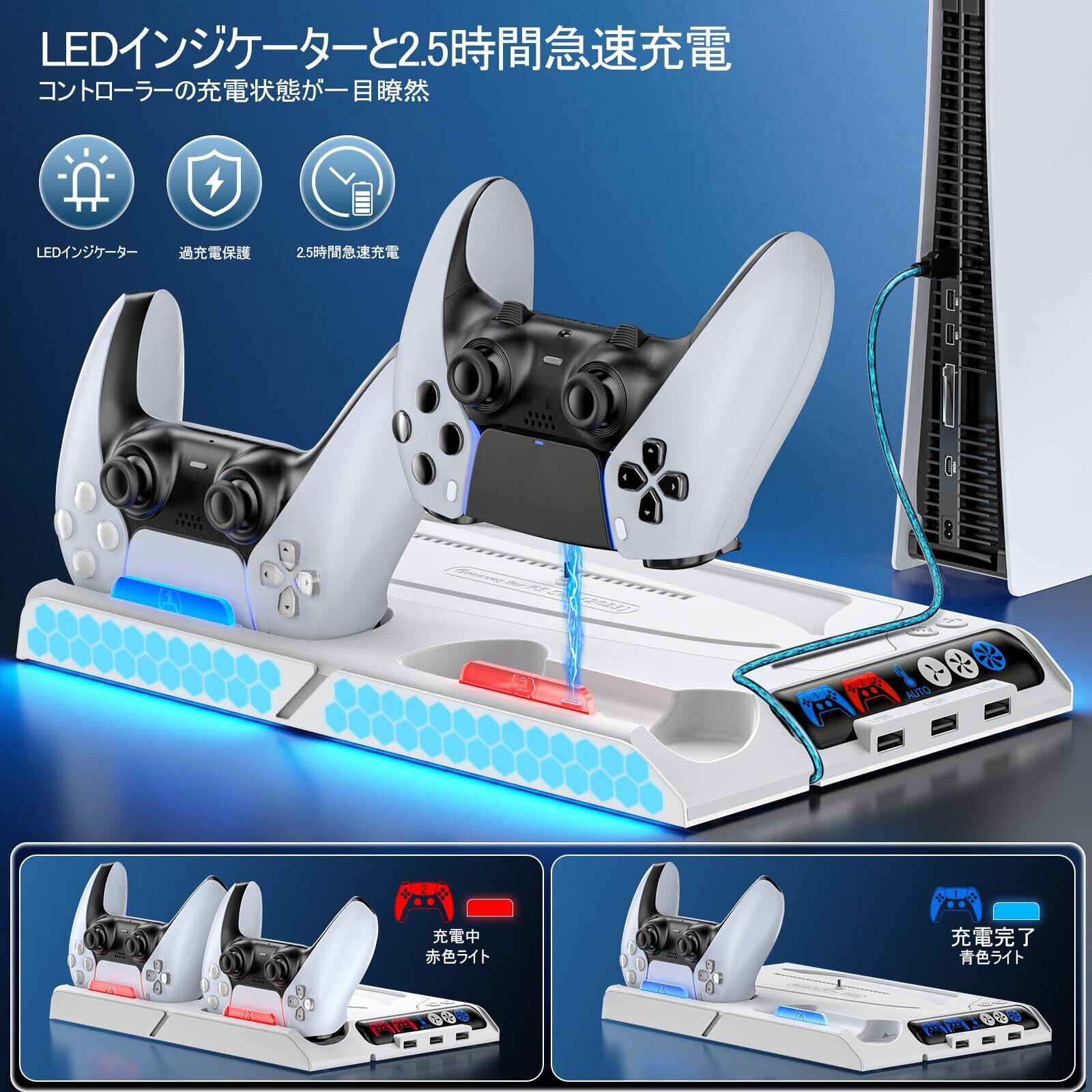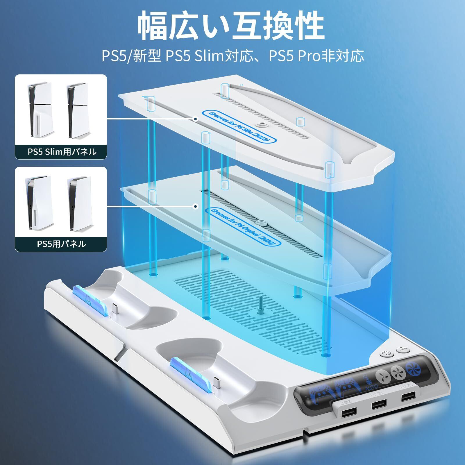【限定セール】【PS5/新型 PS5 Slim対応】新型 PS5 Slim 縦置き 冷却 スタンド 自動/手動モードで風速調整 PS5 コントローラー 充電器 2台同時充電 充電指示ランプ付 2つ隠しケーブル PS5/PS5スリム通常版とデジタル版両対応 PS5 周辺機器 ホワイト