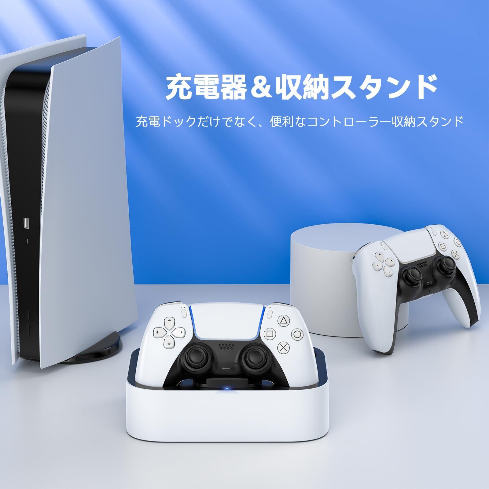 LVFAN PS5 コントローラー 充電器 充電スタンド PS5 アクセサリー 2台同時 ゲームパッド ステーション PS5 周辺機器 LED指示ランプ付き 収納一体型 ベースドック 滑り止めマット付き ホワイト
