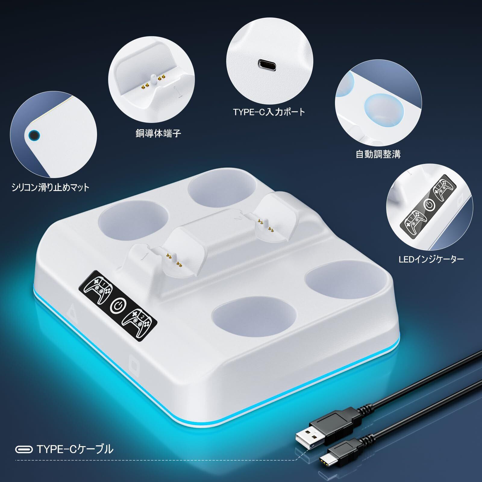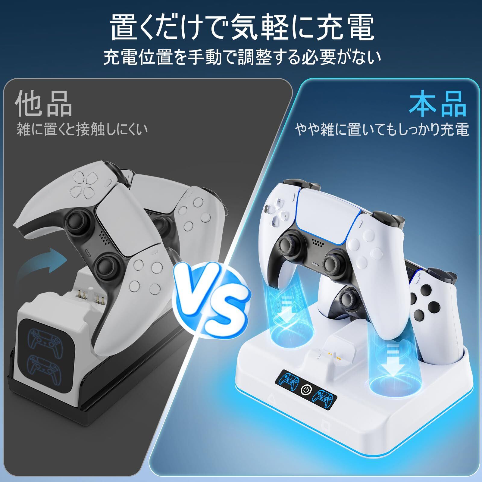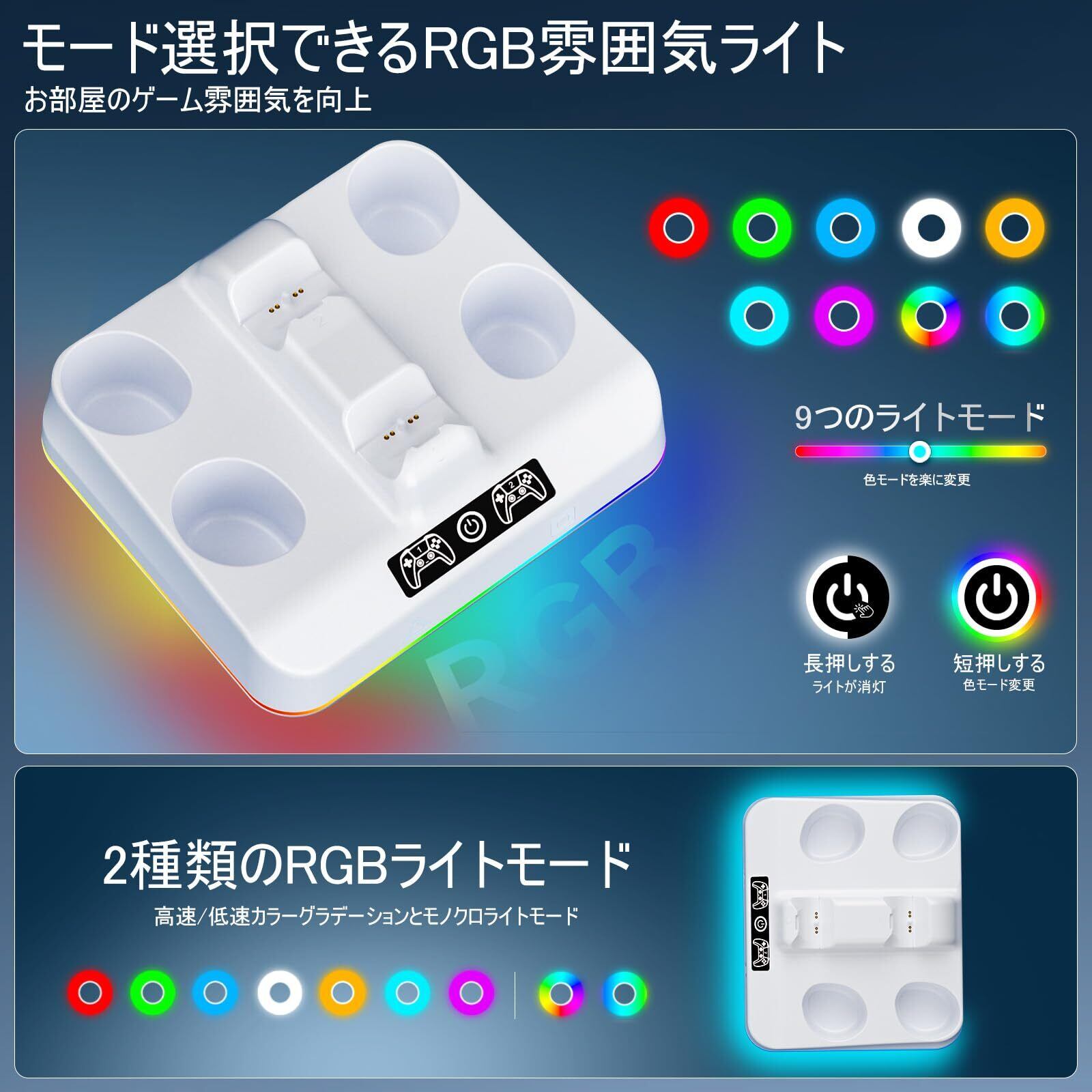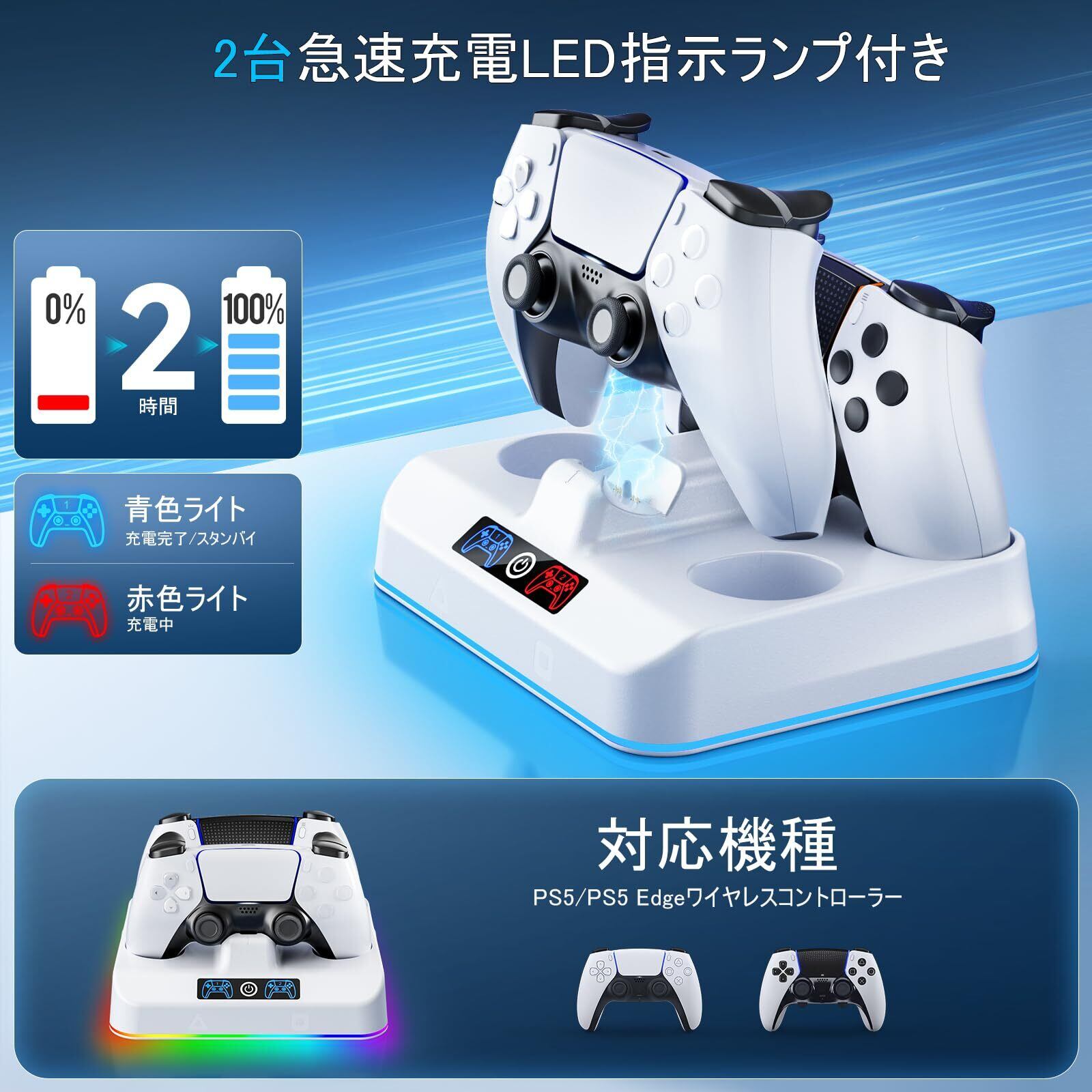 PS5 コントローラー 充電スタンド 2台同時急速充電 置くだけ充電可能 過充電防止 USB-Cケーブル付属 LED指示ランプ付き RGBライトモード変更可能 プレステ5 周辺機器 ホワイト