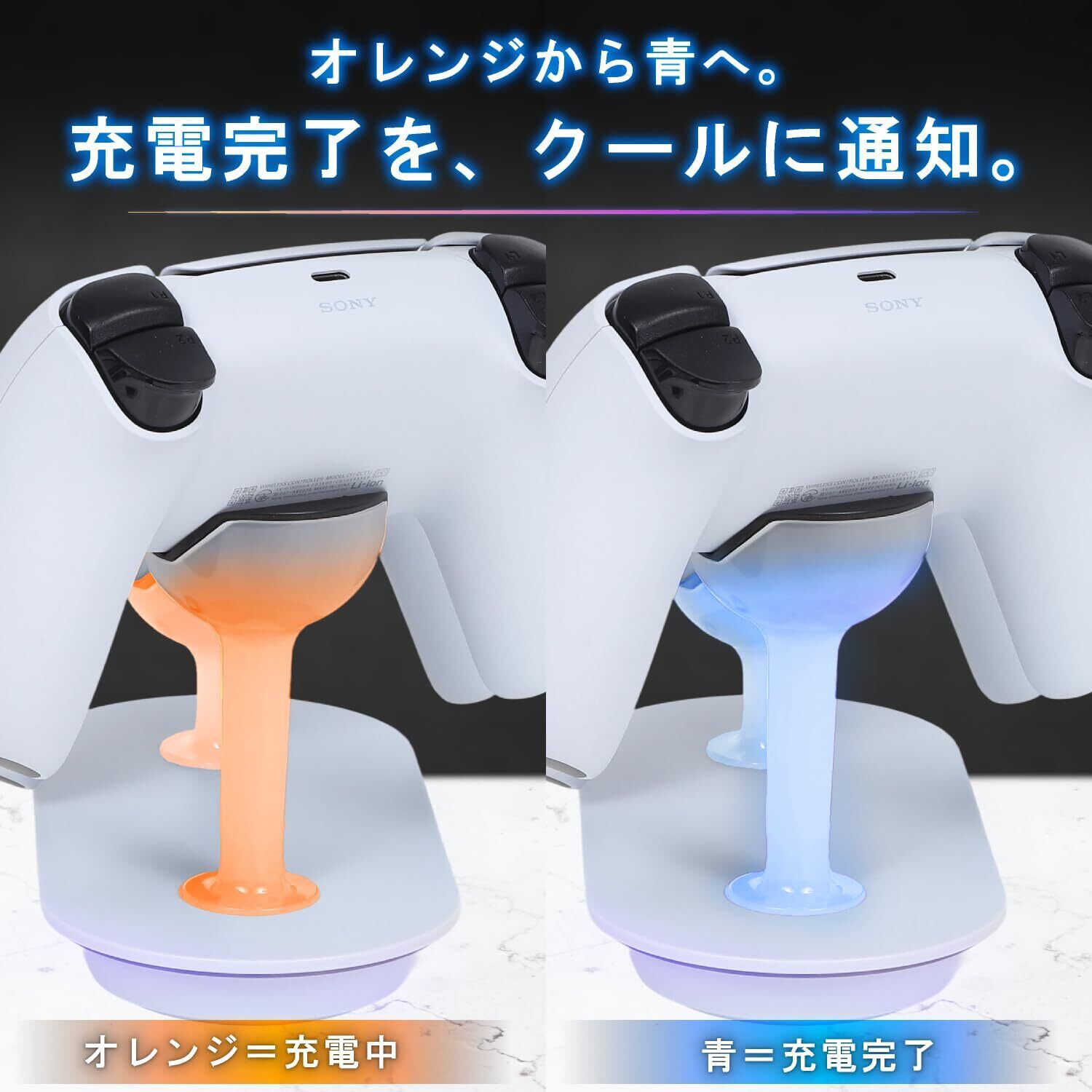 ■ スマートな充電体験 置くだけで充電が始まり、LEDランプの色で完了をお知らせ。過充電防止などの安全機能も搭載し、大切なPS5 純正コントローラーのバッテリーを優しく守ります。