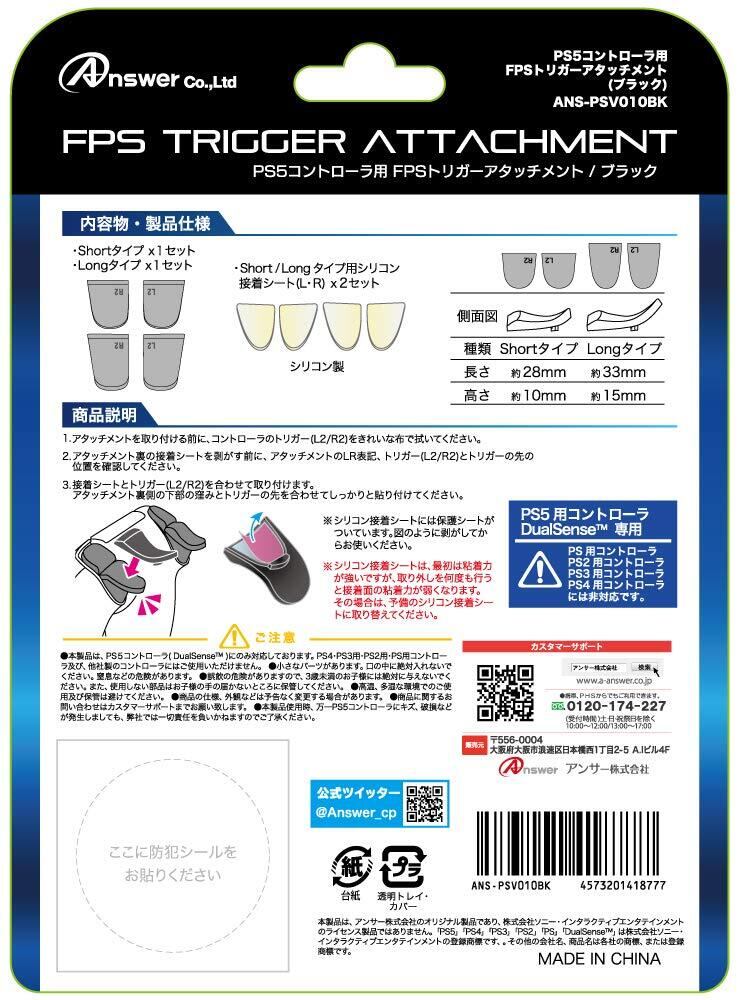 【数量限定】アンサー PS5コントローラ用 FPSトリガーアタッチメント(ブラック)【PS Portal動作確認済/L2R2ボタンが押しやすい/トリガー操作アシスト/工具不要】ANS-PSV010BK