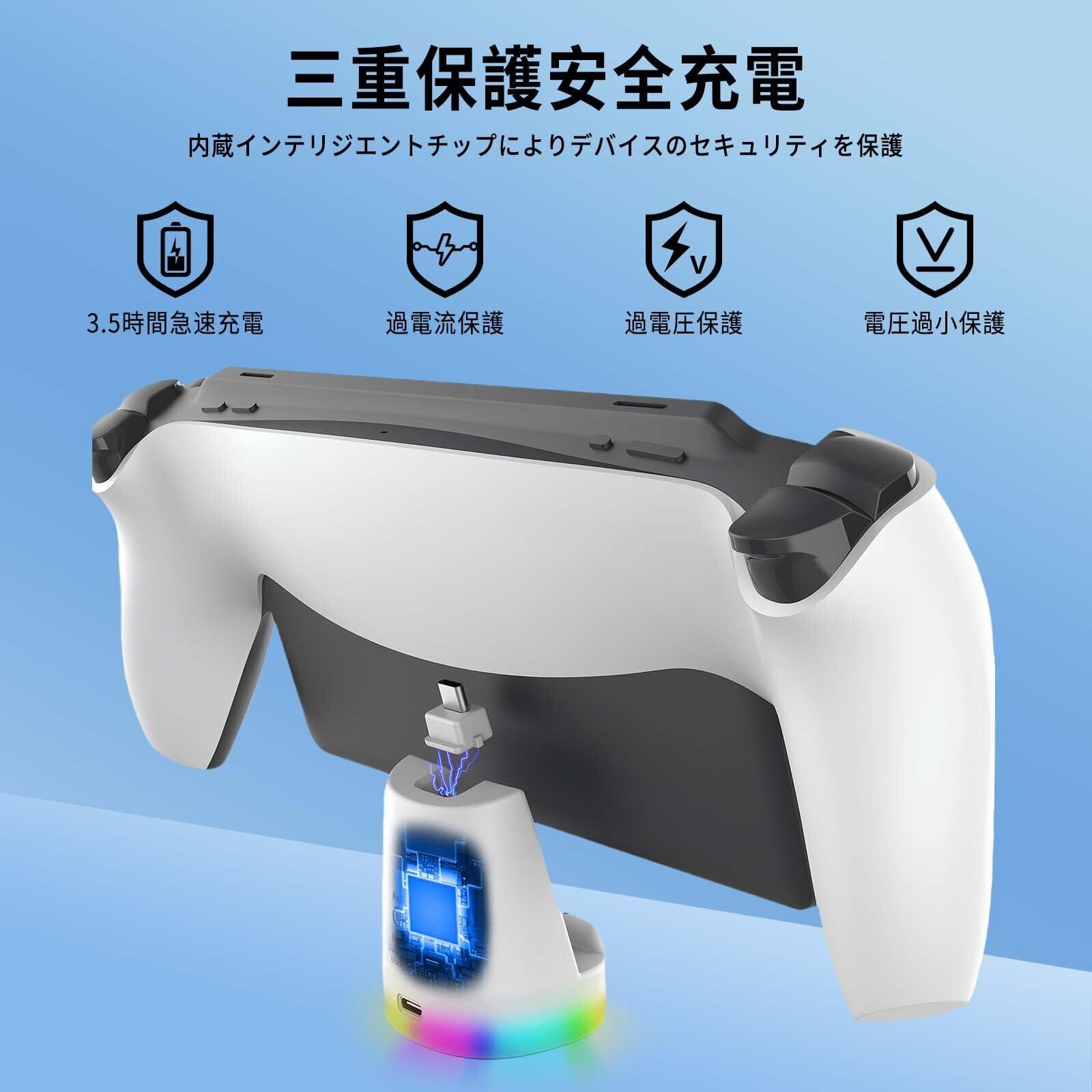 【内蔵スマートチップ&安全保護】PS Portal充電スタンド内蔵のスマートチップ、Playstation Portal充電スタンドは 保護回路があり、電圧・電流・温度をリアルタイム監視、過充電/過熱/短絡を自動防止。充電中に電圧、過電流、短絡などの潜在的な安全上の危険性の影響を受けないように設計されており、安心して使用できるように設計されています、安全で信頼性があり、持つ価値があります!