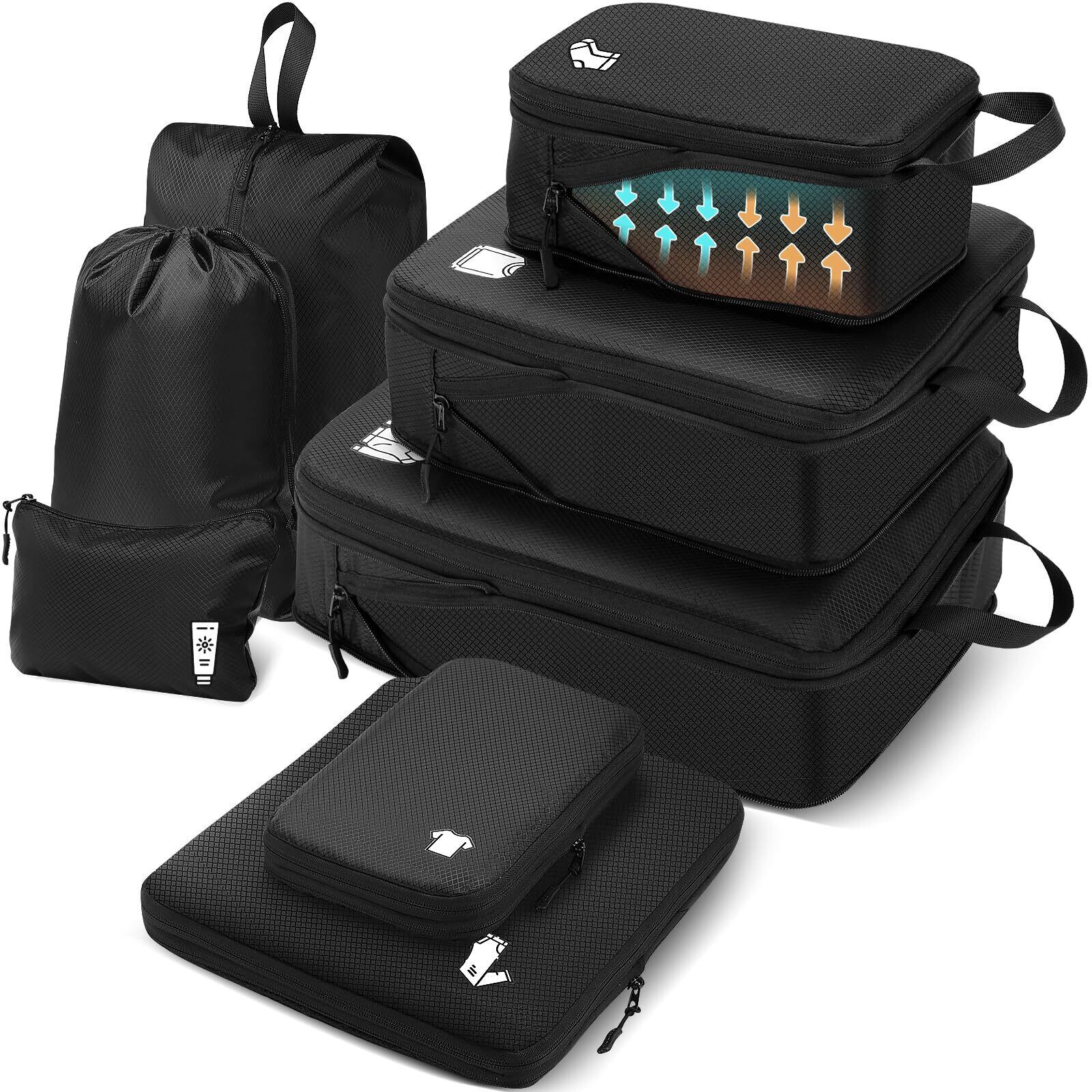 Samfolk トラベルポーチ 旅行用圧縮袋 旅行用ポーチ 圧縮バッグ セット 圧縮袋 旅行 パッキングポーチ 旅行便利グッズ 衣類仕分け 出張 大容量 防水 小物入れ トラベルセット 下着収納 巾着袋 スペース節約(ブラック,8点)