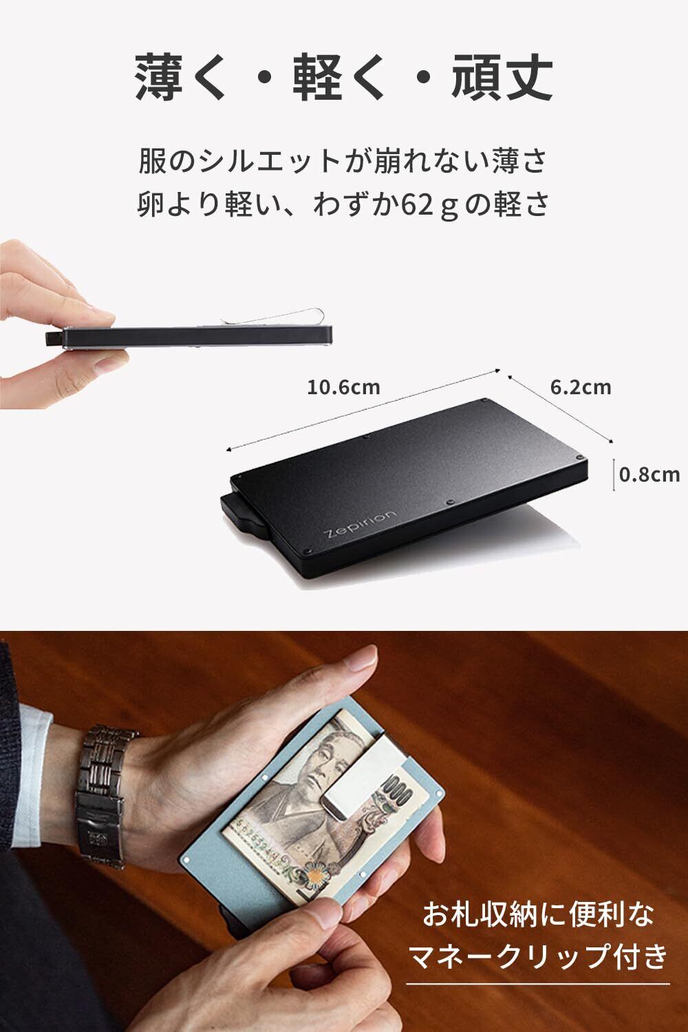 [zepirion] スライド式 薄型カードケース マネークリップ付き 即アクセス 軽量 アルミニウム スキミング防止 財布代わり メンズ レディース シルバー