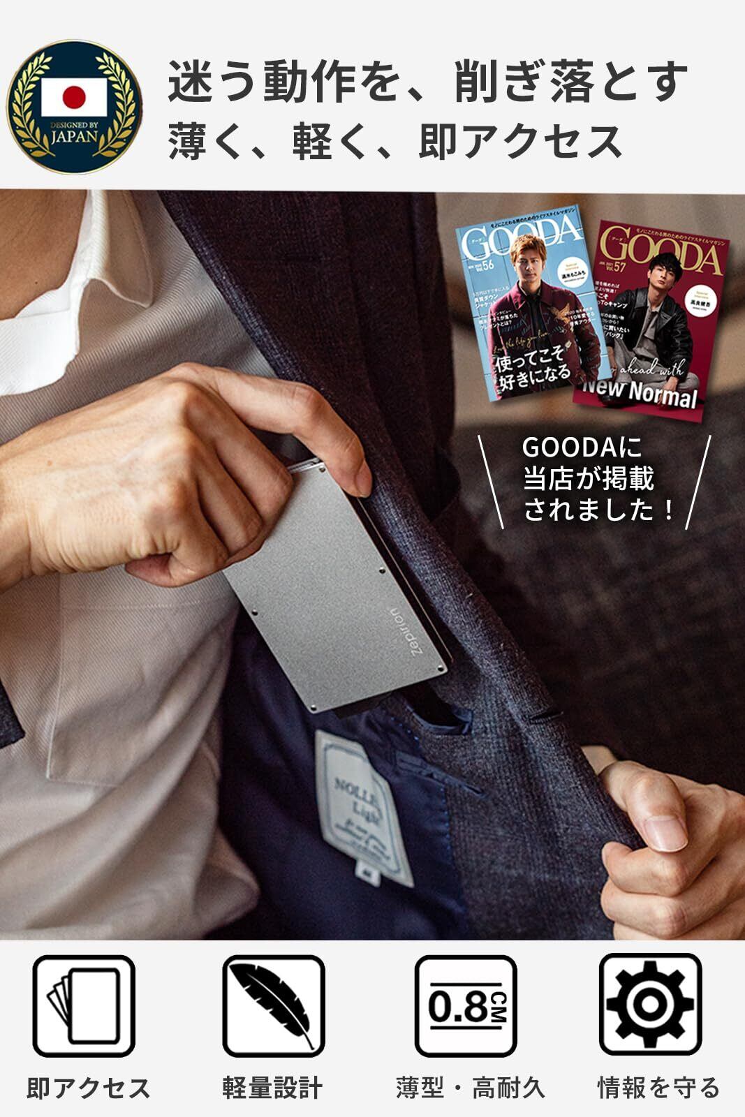【数量限定】[zepirion] スライド式 薄型カードケース マネークリップ付き 即アクセス 軽量 アルミニウム スキミング防止 財布代わり メンズ レディース シルバー